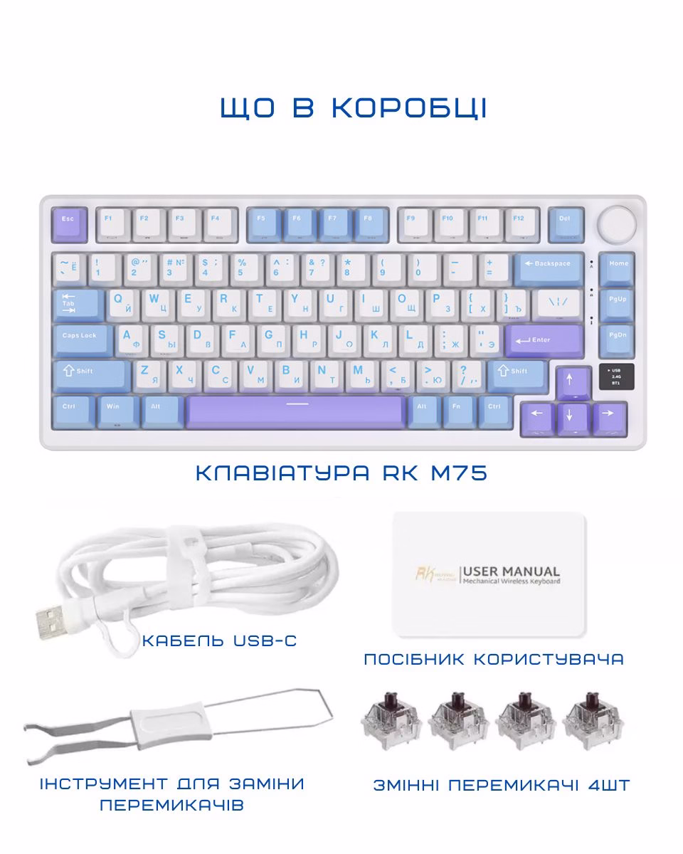 Клавіатура Royal Kludge M75 Wireless UA\RU\ENG Cherry Profile (Brown Switch) Taro Milk (RK-M75UARUENG-CHP-BS-TM)