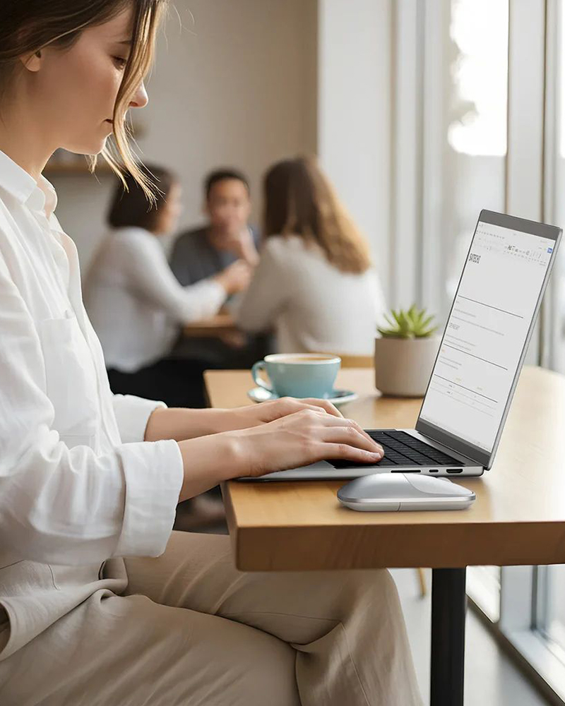 - Ергономічний низький профіль: Тонка та легка конструкція легко вміщується в будь-яку сумку чи кишеню чохла, забезпечуючи зручний хват та природне положення кисті під час роботи.
