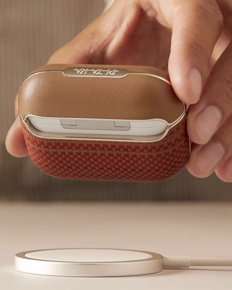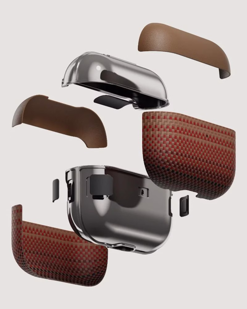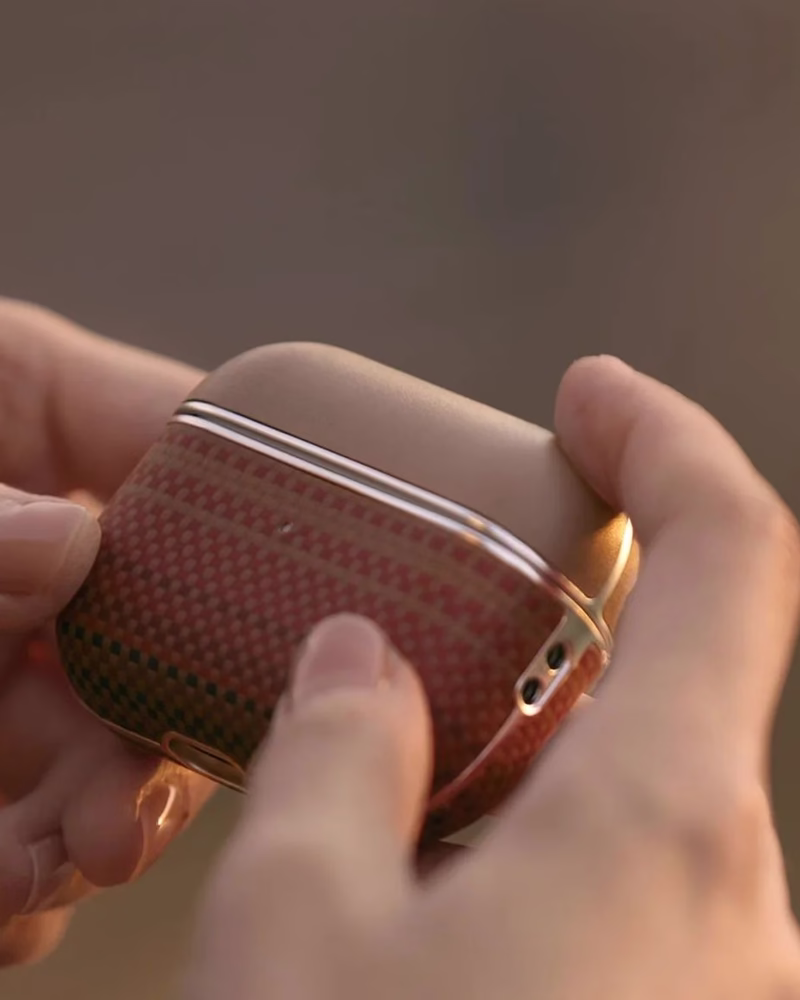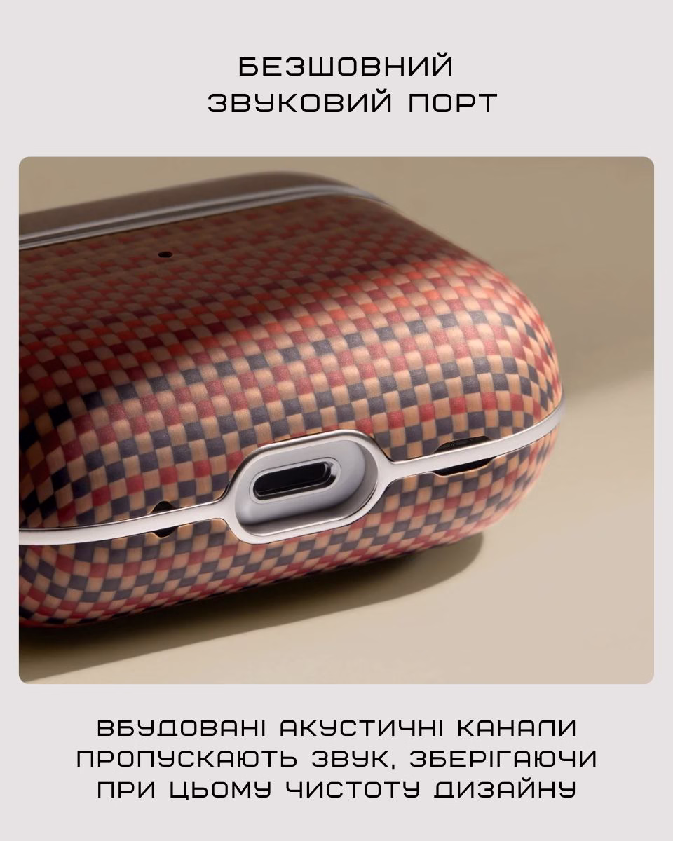Кейс для навушників зроблений у тому ж стилі, що й чохли PITAKA для iPhone. Можна зібрати свою ідеальну колекцію аксесуарів, де все пасує одне до одного — від телефону до навушників.