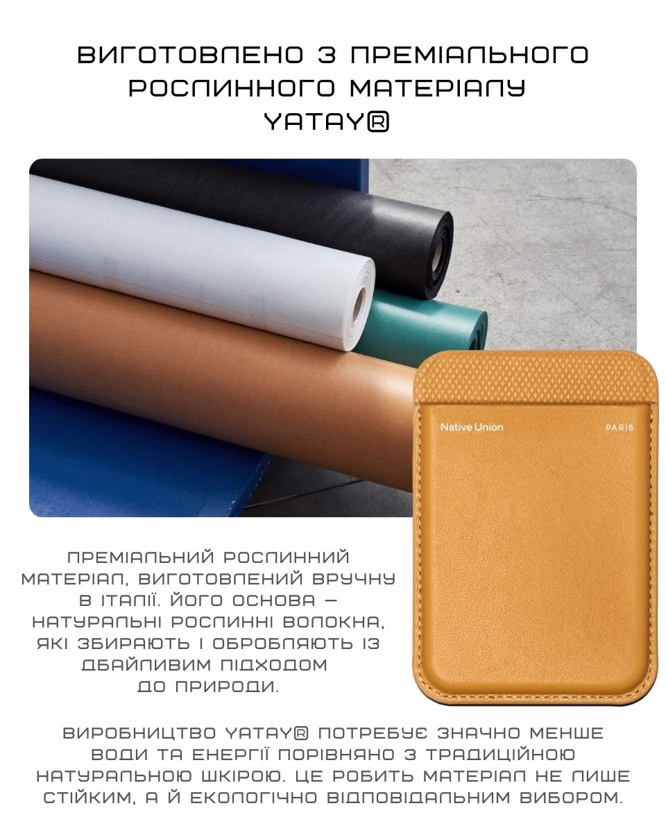 Картхолдер виготовлений з матеріалу — Yatay®, що думає про завтра. Міцніший за звичні альтернативи. Стійкий до часу.