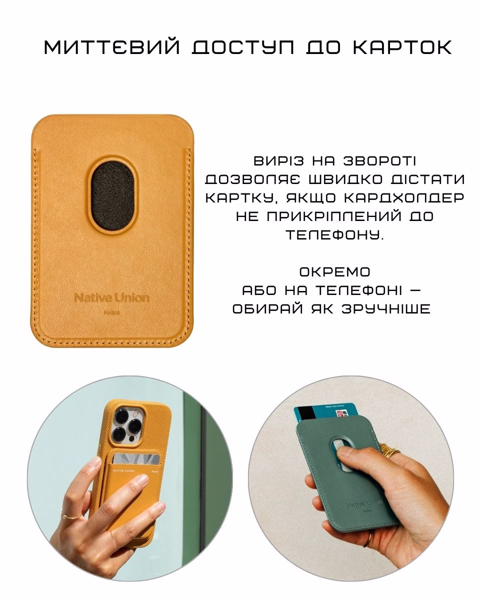 (RE) Classic Wallet сумісний із будь-яким iPhone і чохлами з підтримкою MagSafe. Вбудовані магніти забезпечують надійну та стабільну фіксацію. Тонкий і продуманий дизайн робить цей кардхолдер практичним продовженням телефону. Тримається міцно, не зісковзує і простий у використанні.