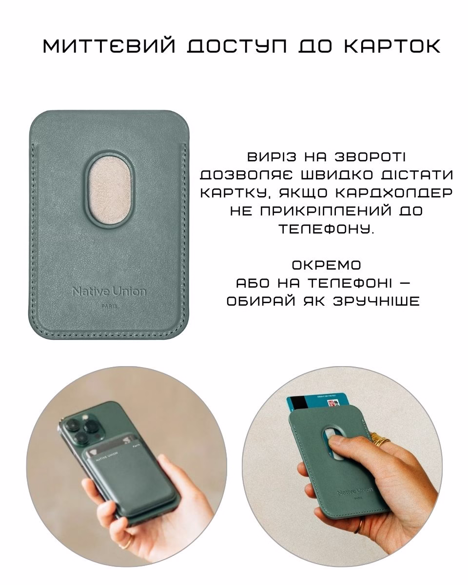 Магнітний картхолдер Native Union (RE) Classic Slate Green (RECLA-GRN-WAL)