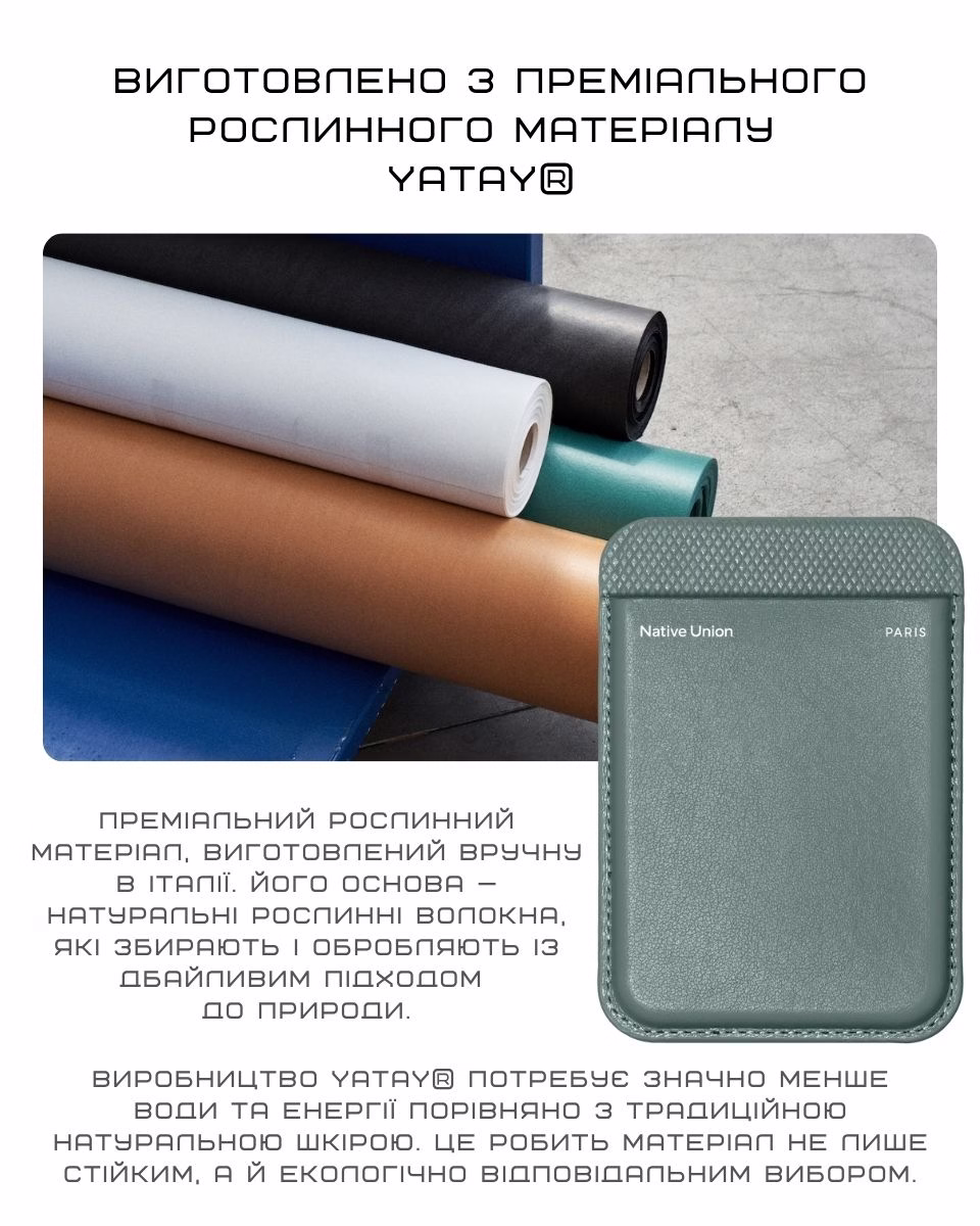 Картхолдер виготовлений з матеріалу — Yatay®, що думає про завтра. Міцніший за звичні альтернативи. Стійкий до часу.