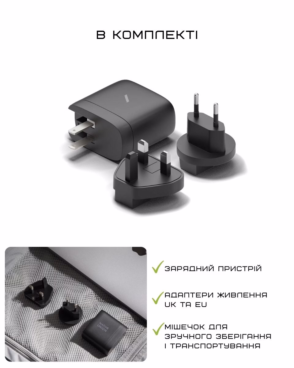 Мережевий зарядний пристрій Native Union Fast GaN Charger PD 67W 3 Ports Black (FAST-PD67-BLK-2CA)