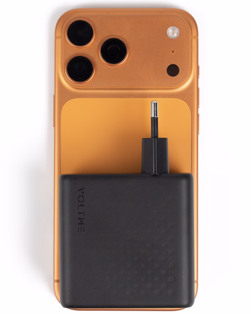 Voltme Revo 100 Pro — це концентрована потужність у матовому корпусі кольору Black. Він відчувається в руці як монолітний злиток: важкий рівно настільки, щоб ви розуміли — всередині серйозна компонентна база, а не порожнеча. Глибокий чорний відтінок виглядає благородно, а тактильна матовість покриття робить кожне підключення кабелю естетично приємним.