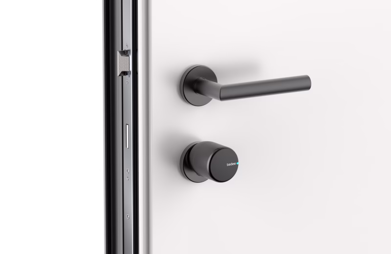 Шукаєте ключі? Це справа минулого! З'єднайте свій смарт-замок Tedee з додатком і відчиніть двері одним дотиком до смартфону або Apple Watch.