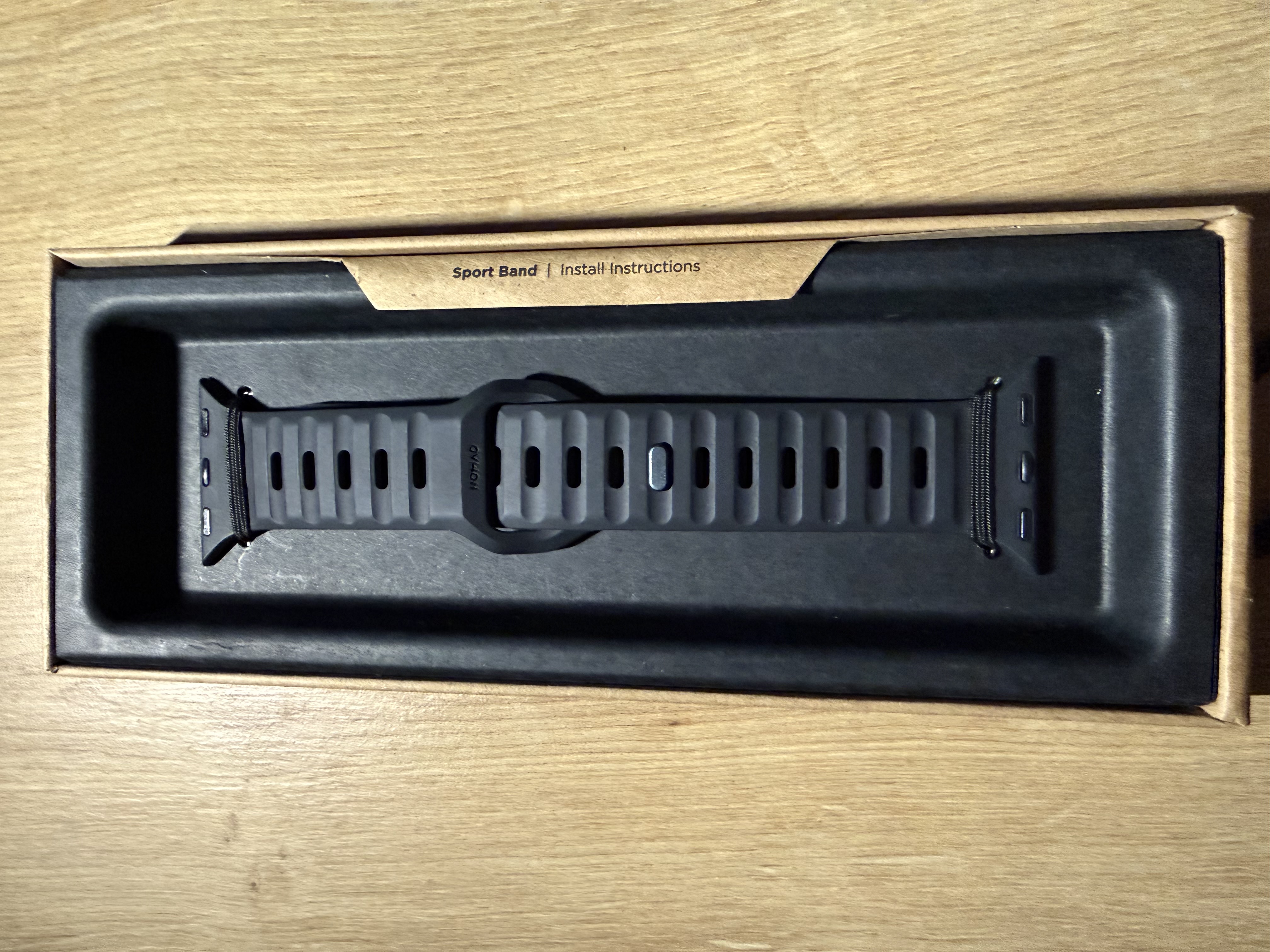 Тільки найнеобхідніше: сам ремінець і стильна упаковка. Nomad Sport Band — мінімалізм в чистому вигляді.