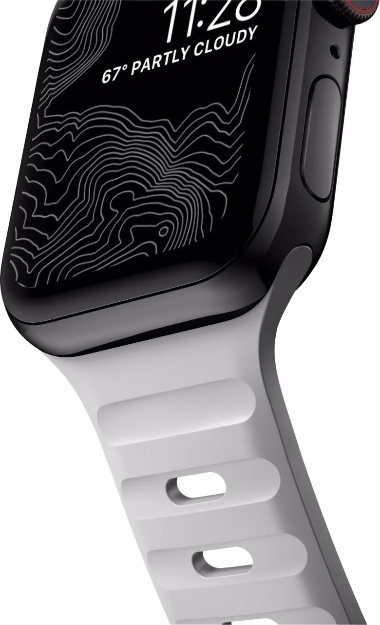 Підкорюй нові вершини або просто насолоджуйся комфортом кожного дня з Nomad Rocky Point Band! Цей ремінець створений для тих, хто цінує свободу та активний спосіб життя. Виготовлений з надміцного фтореластомеру (FKM) та титанової фурнітури, він витримає будь-які твої випробування – від інтенсивних тренувань до повсякденних справ. Вентиляційні канали забезпечують комфорт навіть у найспекотніші дні. Rocky Point Band – твій надійний супутник, куди б ти не прямував.