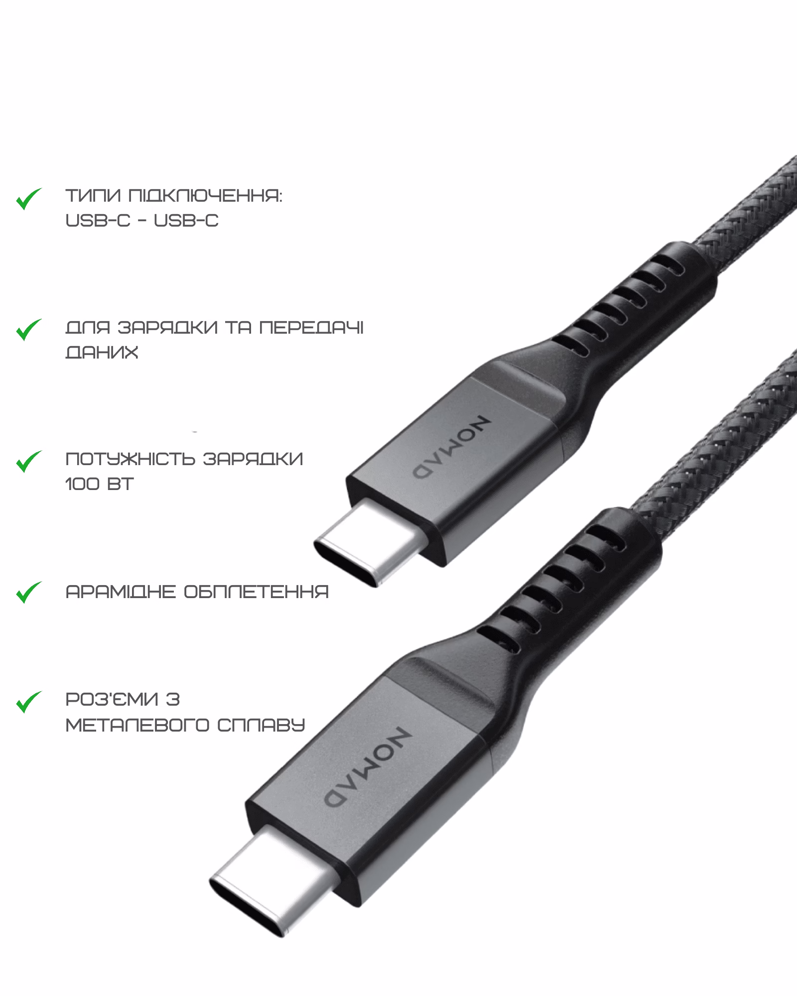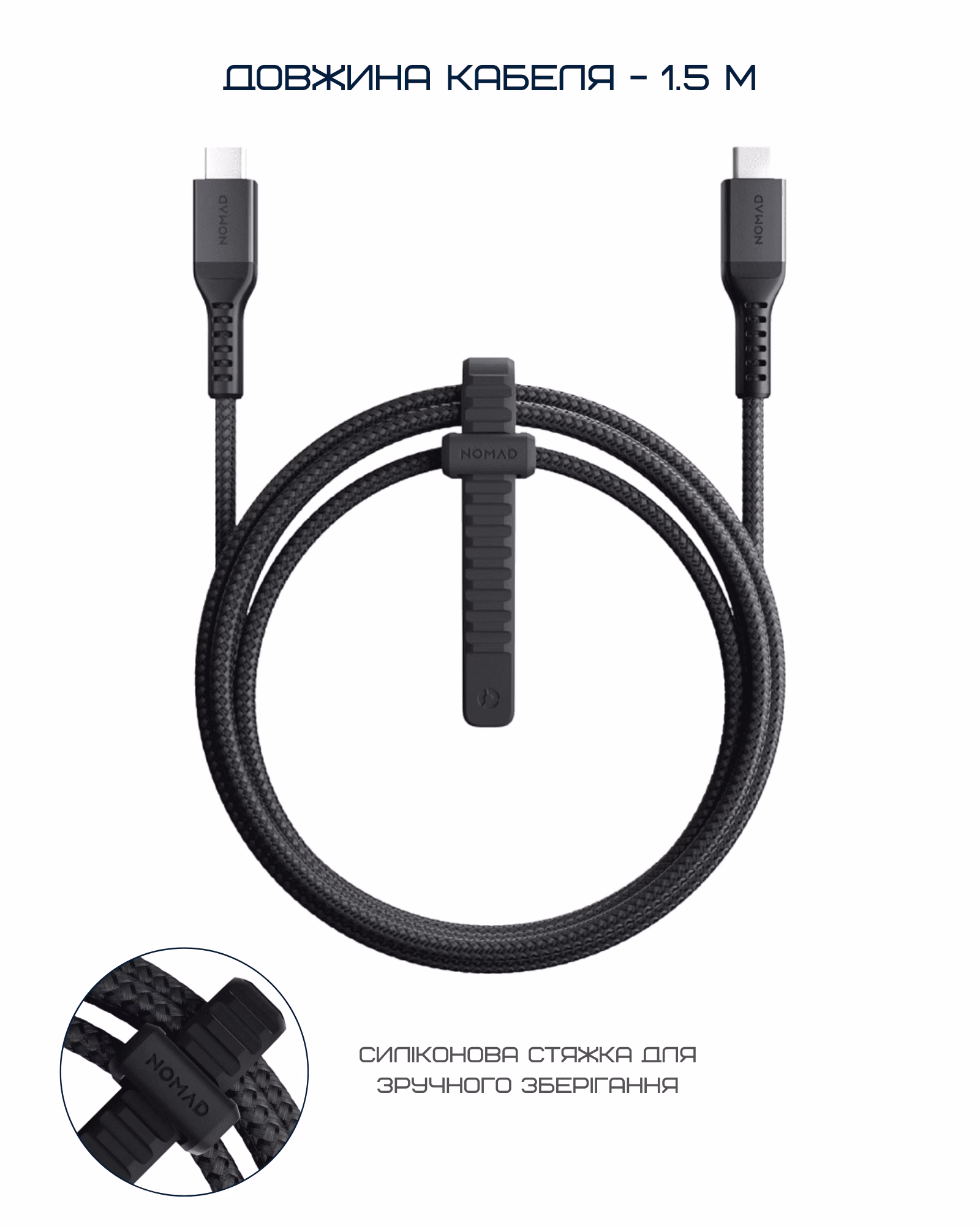 Nomad USB-C Kevlar Cable — це більше, ніж просто кабель. Це інструмент для продуктивних людей, які потребують стабільної роботи своїх пристроїв у будь-яких умовах. Виготовлений із високоякісних матеріалів, він не лише витримує навантаження, а й ефективно працює протягом тривалого часу. Завдяки своєму дизайну і характеристикам, він відповідає вимогам професіоналів, що цінують швидкість і надійність у роботі. З таким кабелем Ви не тільки вирішуєте технічні задачі, але й робите свою роботу зручнішою і продуктивнішою.