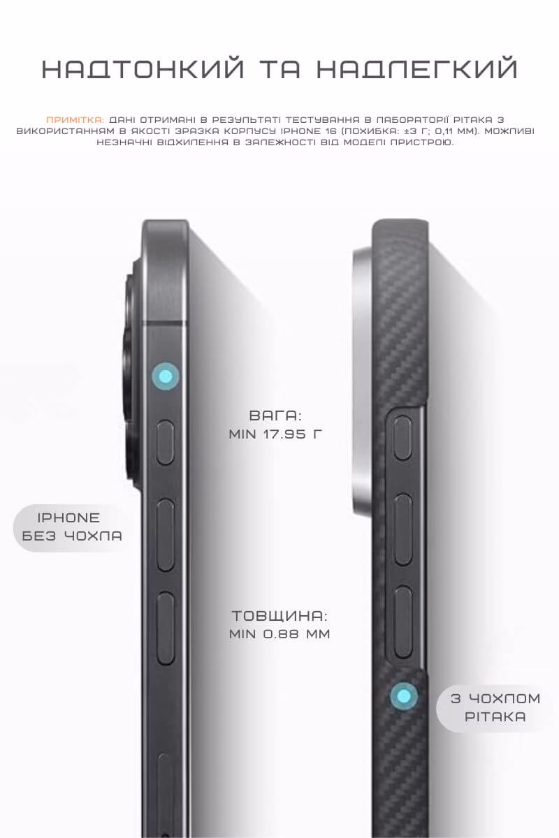 Надміцний чохол з арамідного волокна захищає телефон від несподіваних падінь, подряпин та ударів. Стильний, невагомий та надійний аксесуар преміальної якості, який не захочеться випускати з рук.