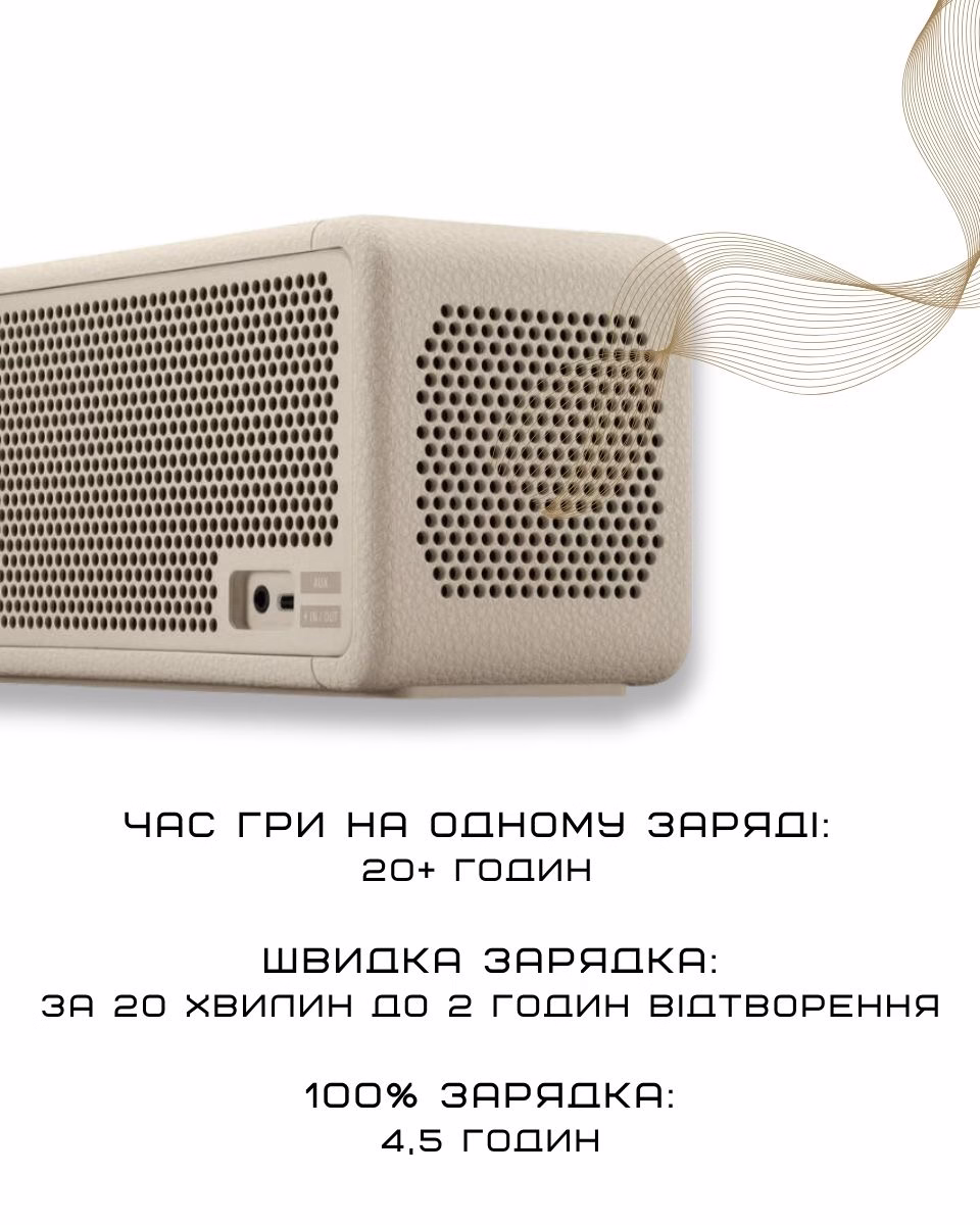 Ця акустика готова транслювати музику весь день безперервно завдяки 20+ годинам автономної роботи без підзарядки. І повністю заряджається лише за 4,5 години. Тому вона завжди зможе зіграти на біс, коли ви того захочете.