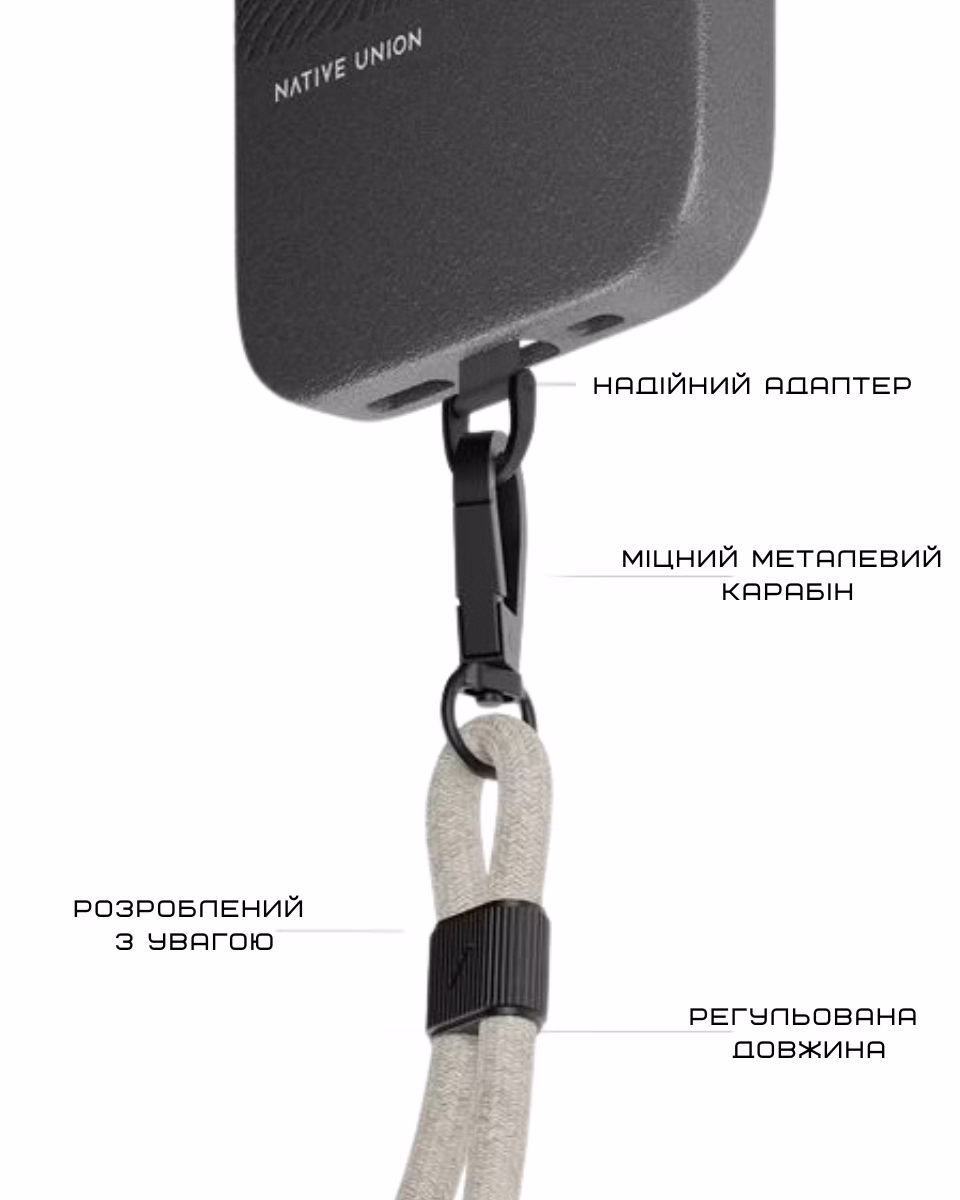 Ремінець City Sling достатньо легкий, щоб його не відчувати, але водночас достатньо міцний, аби надійно тримати телефон. Завдяки йому руки залишаються вільними, а гаджет — в безпеці та у миттєвому доступі. Зручно, коли знімаєш сторі, слухаєш музику або під час кави на ходу.