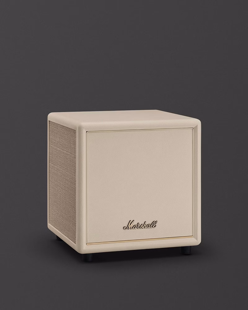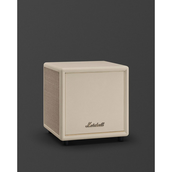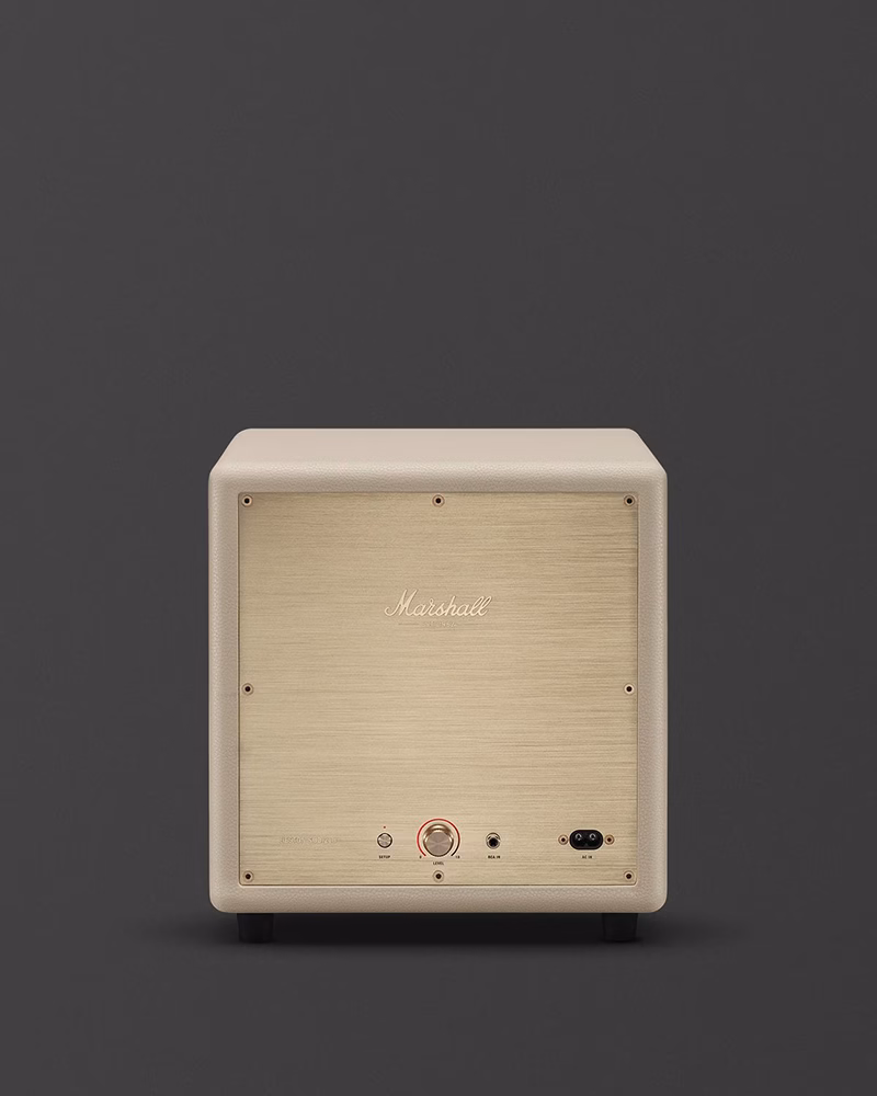 Marshall Heston Sub 200 у кремовому кольорі — це не просто сабвуфер, а вишуканий елемент інтер'єру. Він створений для тих, хто прагне отримати потужний, структурований бас, не порушуючи гармонію світлої кімнати. Фірмова текстурована поверхня та вінтажна решітка роблять цей девайс ідеальним напарником для саундбарів Heston 60 та 120 у аналогічному виконанні.