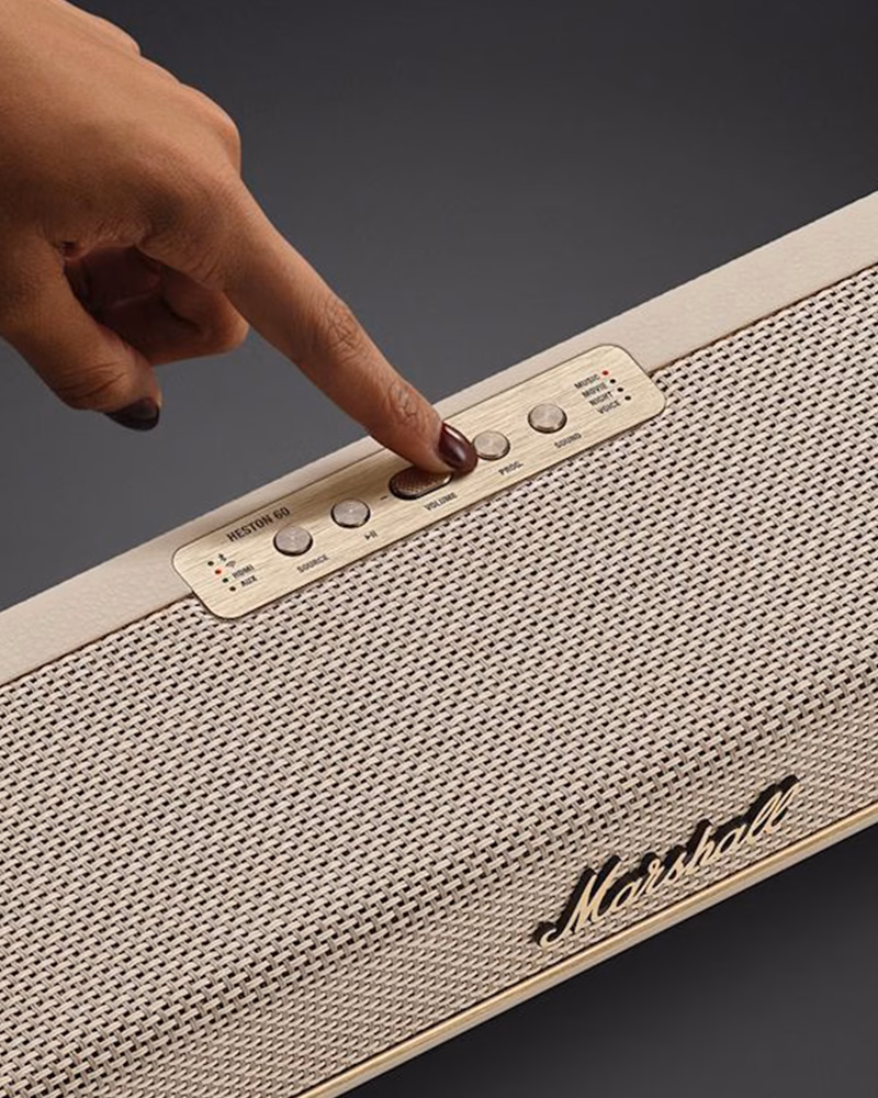 Marshall Heston 60 Cream — це вибір тих, хто цінує візуальну легкість без компромісів у потужності. Виконаний у витонченому кремовому кольорі з фірмовою сріблясто-сірою сіткою, цей саундбар ідеально доповнює світлі та мінімалістичні інтер'єри. Незважаючи на делікатний вигляд, всередині ховається той самий безкомпромісний драйв Marshall, здатний перетворити невелику кімнату на повноцінний кінозал.