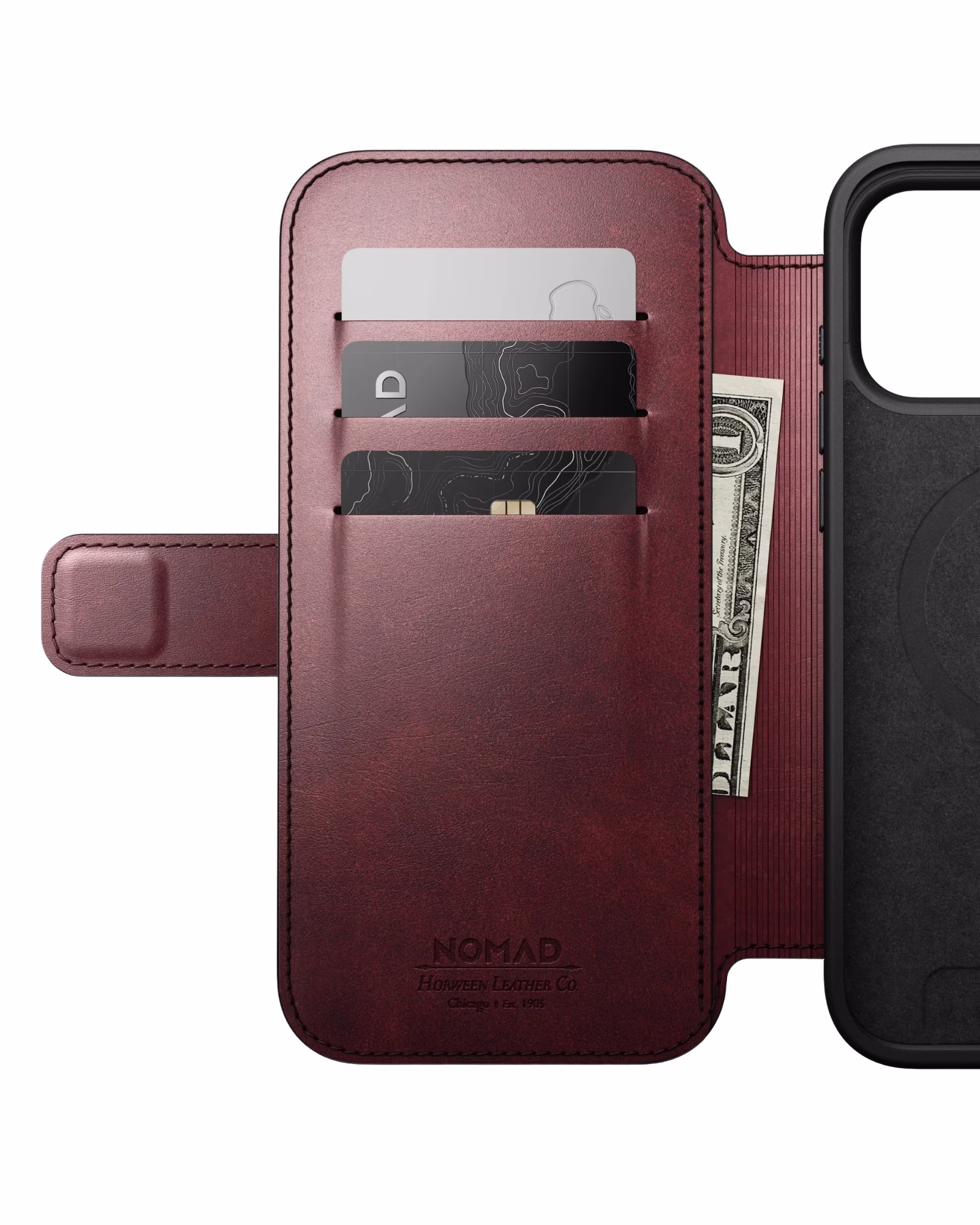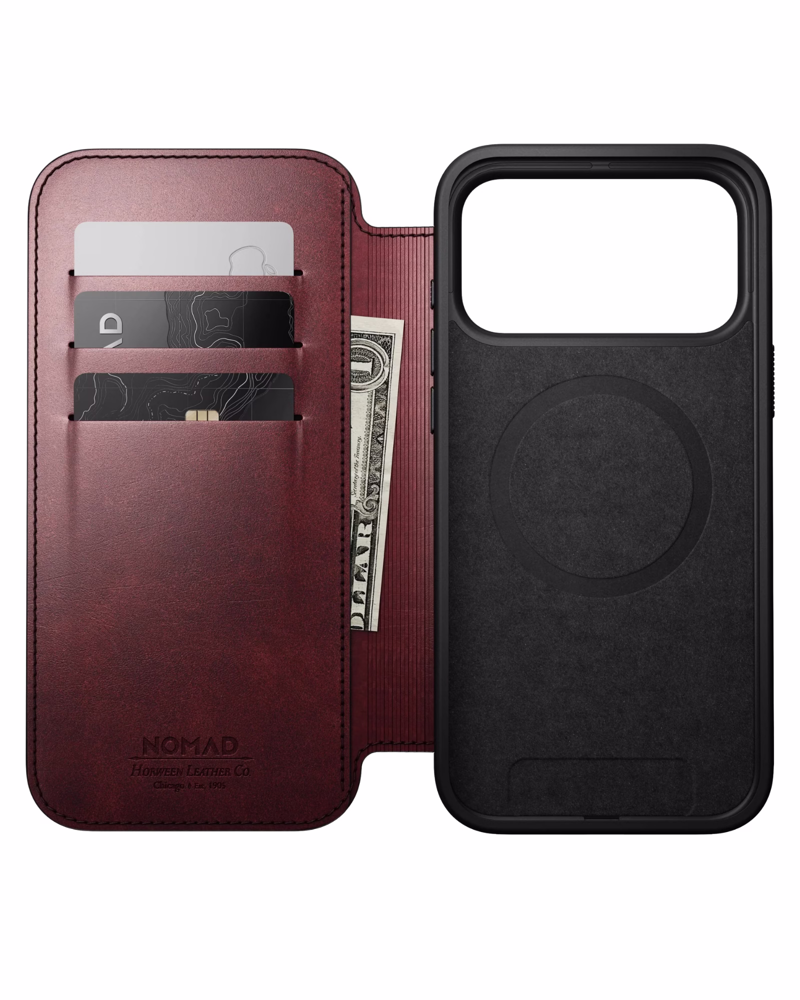Шкіряний чохол-книжка Nomad Modern Folio Horween Burgundy для iPhone 17 Pro Max
