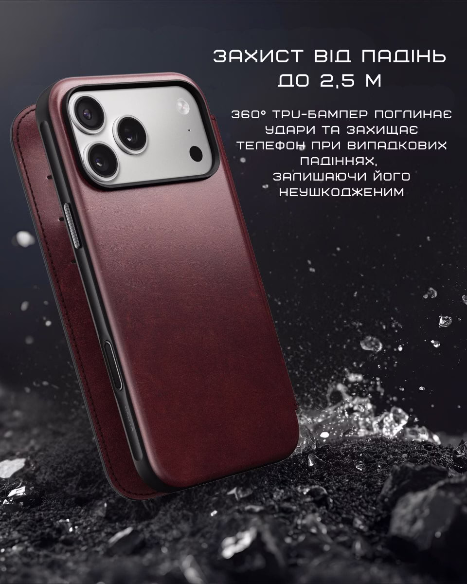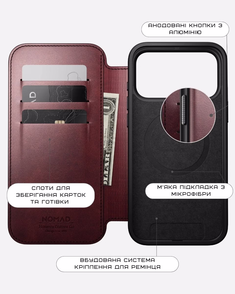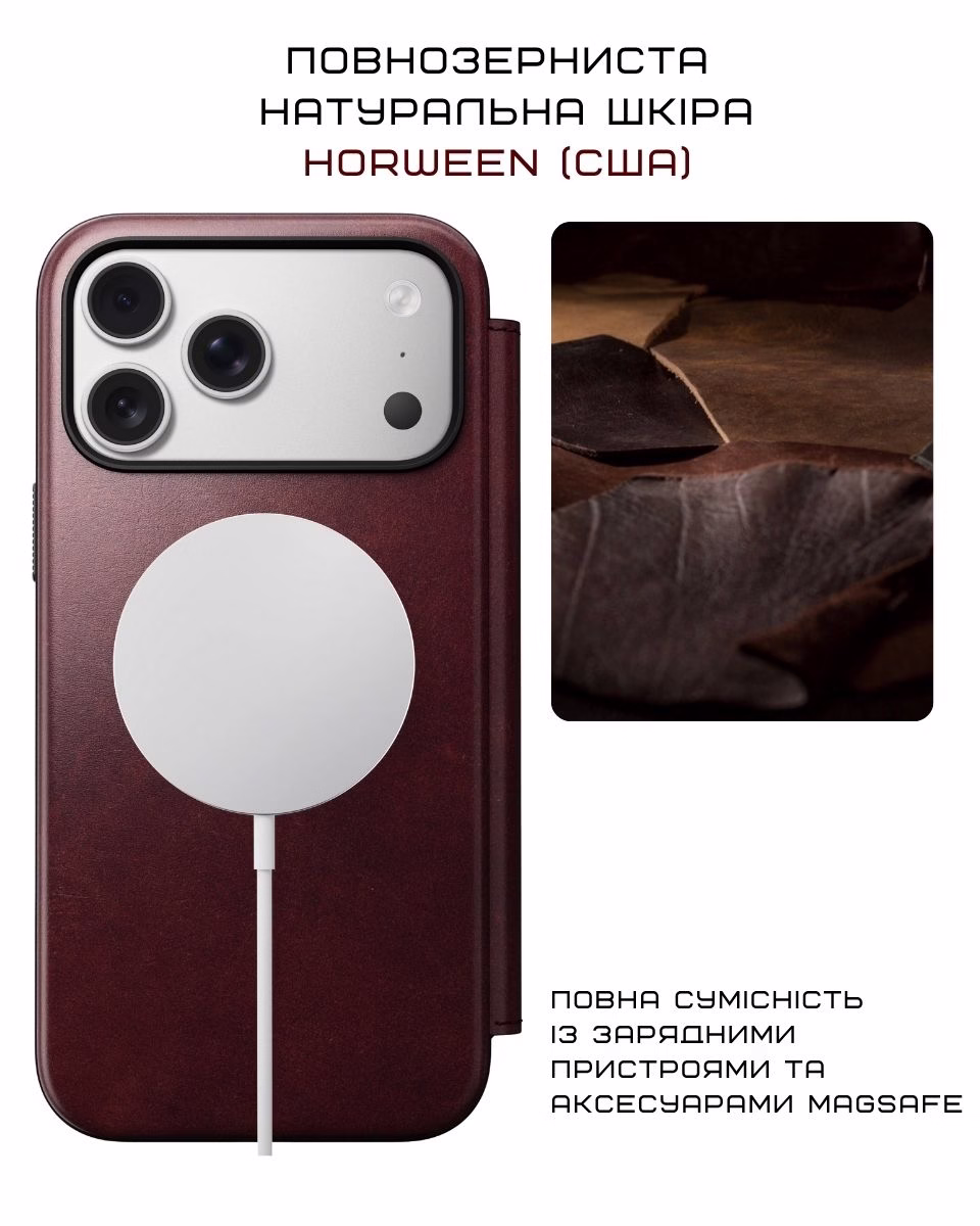 Шкіряний чохол-книжка Nomad Modern Folio Horween Burgundy для iPhone 17 Pro