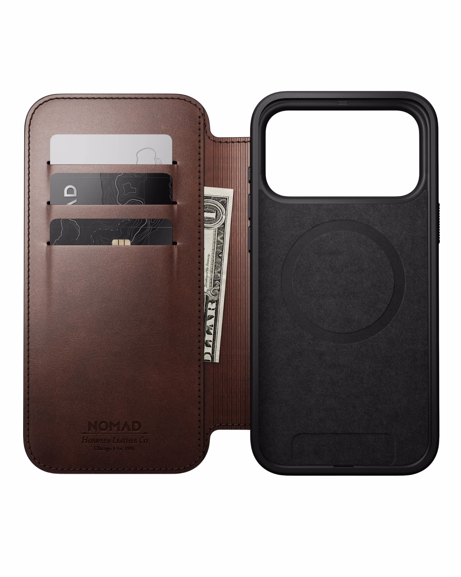 Шкіряний чохол-книжка Nomad Modern Folio Horween Rustic Brown для iPhone 17 Pro Max