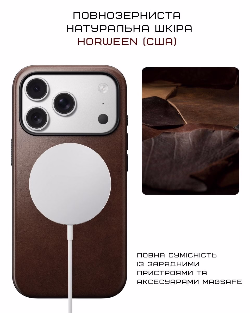Шкіряний чохол Nomad Modern Horween Rustic Brown для iPhone 17 Pro