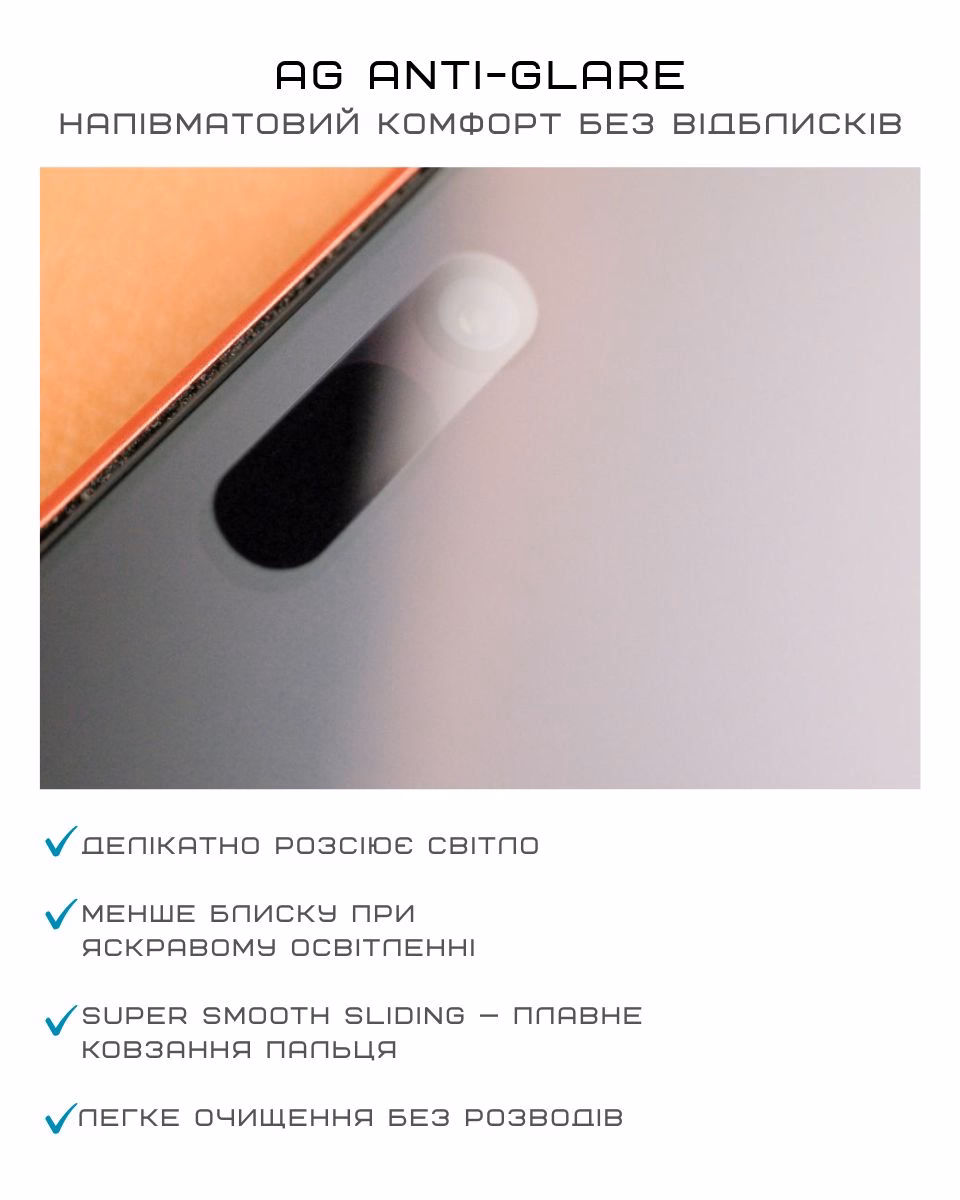 ANANK 2.5D Anti-Fingerprint — напівматове скло з оригінального AG (Anti-Glare) матеріалу від японського бренду Asahi. AG-поверхня (антиблікова) з мікротекстурованою структурою розсіює світло та мінімізує відблиски без втрати чіткості й контрастності.