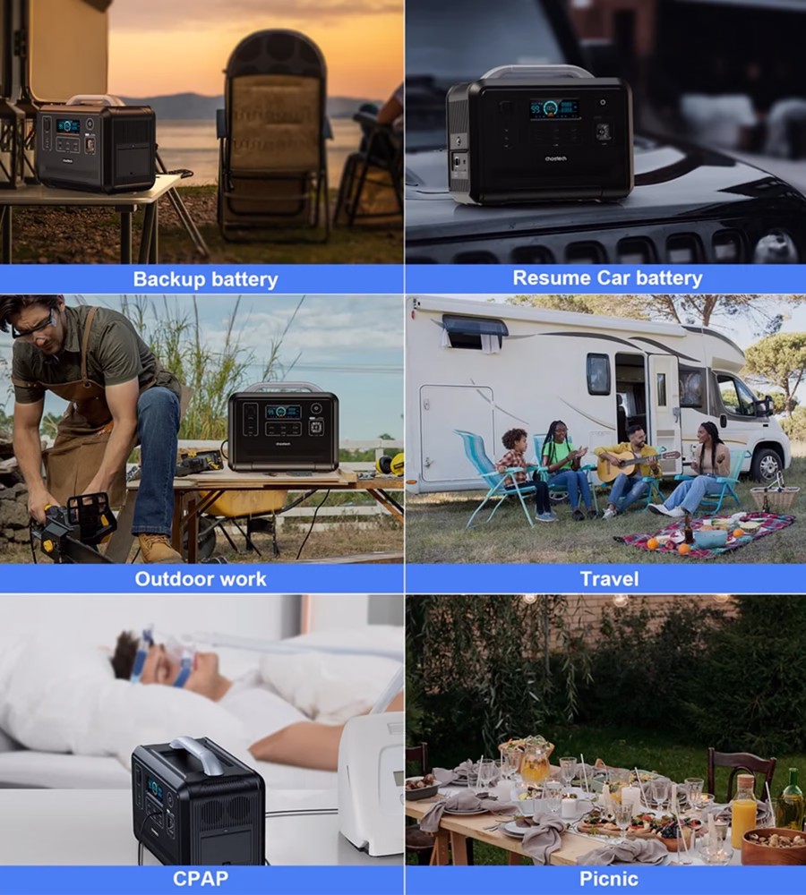 Наша електростанція двонаправленого заряджання має величезний накопичувач енергії та може використовуватися як резервний акумулятор, може допомогти вам перезапустити автомобільний акумулятор або живити ваш апарат CPAP. Choetech розробив найкориснішу портативну батарею для ваших походів, пікніків або для живлення дриля, коли ви вирішите виконувати роботу на відкритому повітрі, яку відкладали.