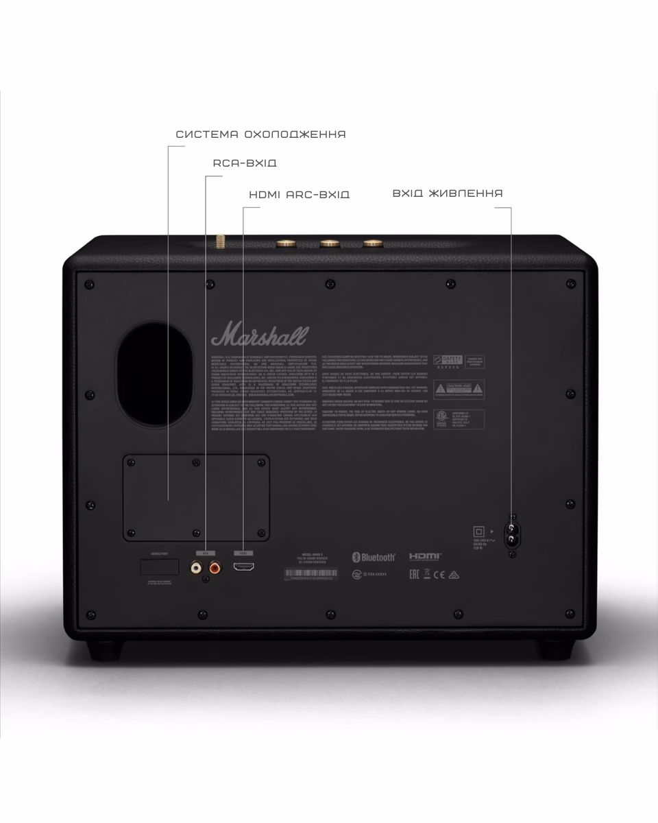 Благодаря такому количеству способов подключения к Woburn III получить нужный звук для прослушивания музыки или просмотра телевизора никогда не было так просто. Подключитесь к динамику непосредственно с устройства с помощью Bluetooth, RCA или 3,5 мм. Woburn III также имеет вход HDMI, позволяющий подключить Woburn III к телевизору для получения уникальных впечатлений от просмотра Marshall.