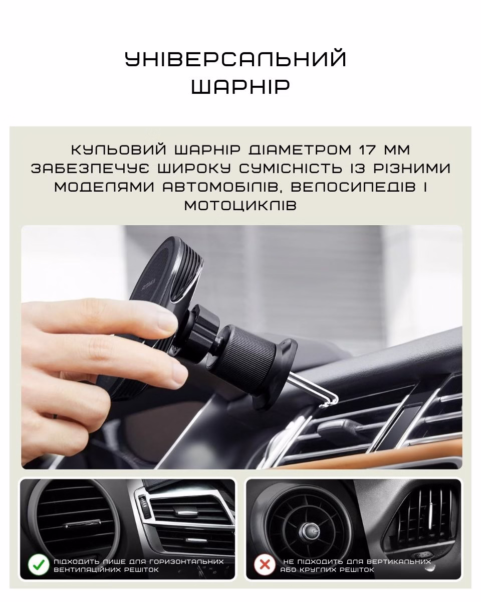В авто важно, чтобы всё было удобно и работало чётко. Чтобы телефон держался прочно, всегда был в поле зрения и быстро заряжался на ходу. Когда в дороге слушаешь музыку или принимаешь звонки — чтобы всё было под рукой, ничего не скользило и не отвлекало.
