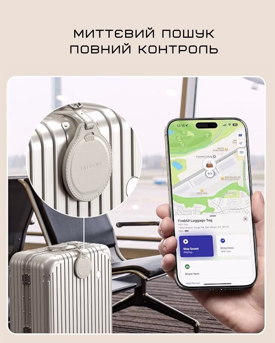 - Умный трекер для отслеживания багажа — интеграция с Apple Find My позволяет мгновенно определить местоположение сумки или чемодана.
