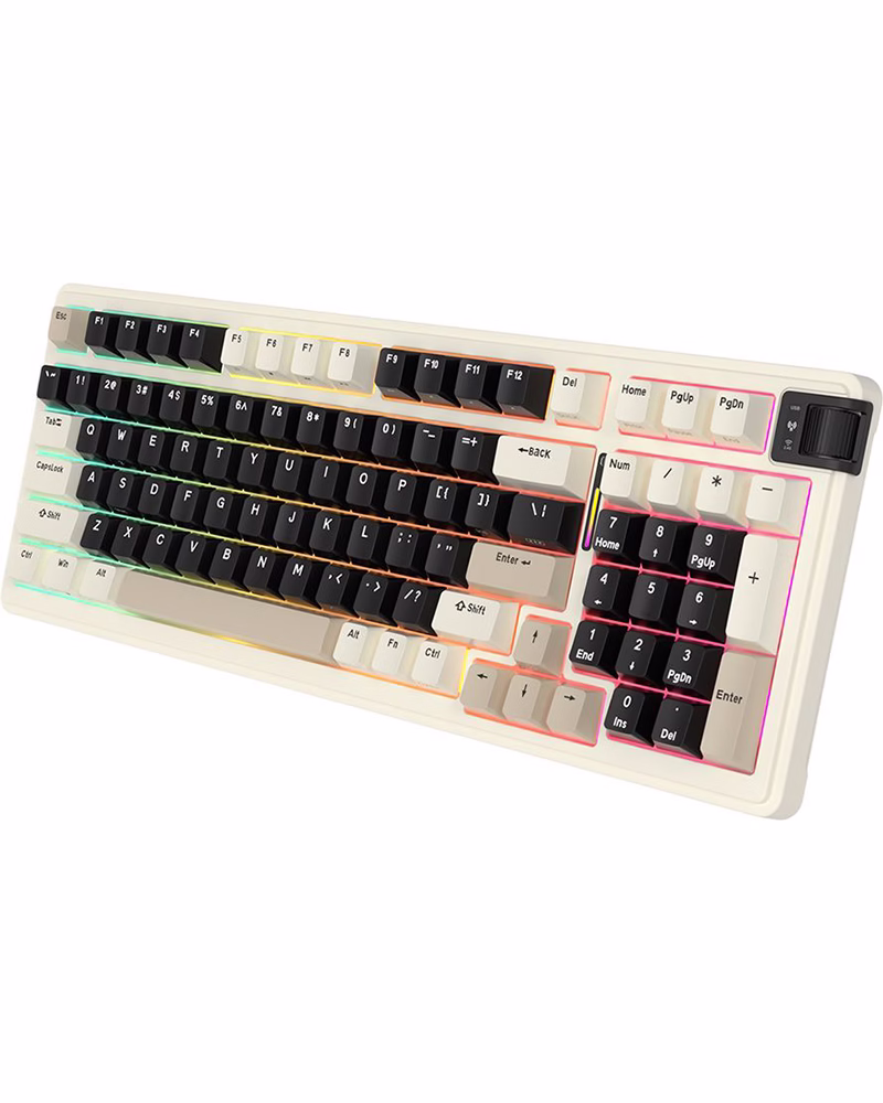 Откройте для себя KZZI K98 – механическую клавиатуру премиум-класса. Уникальная конструкция leaf-spring gasket с 5 слоями звукоизоляции обеспечивает мягкий и тихий ход, а долговечные PBT-колпачки и переключатели Rainbow Switch идеально подходят для игр и работы. Многофункциональное алюминиевое колесо добавляет удобства в управлении.