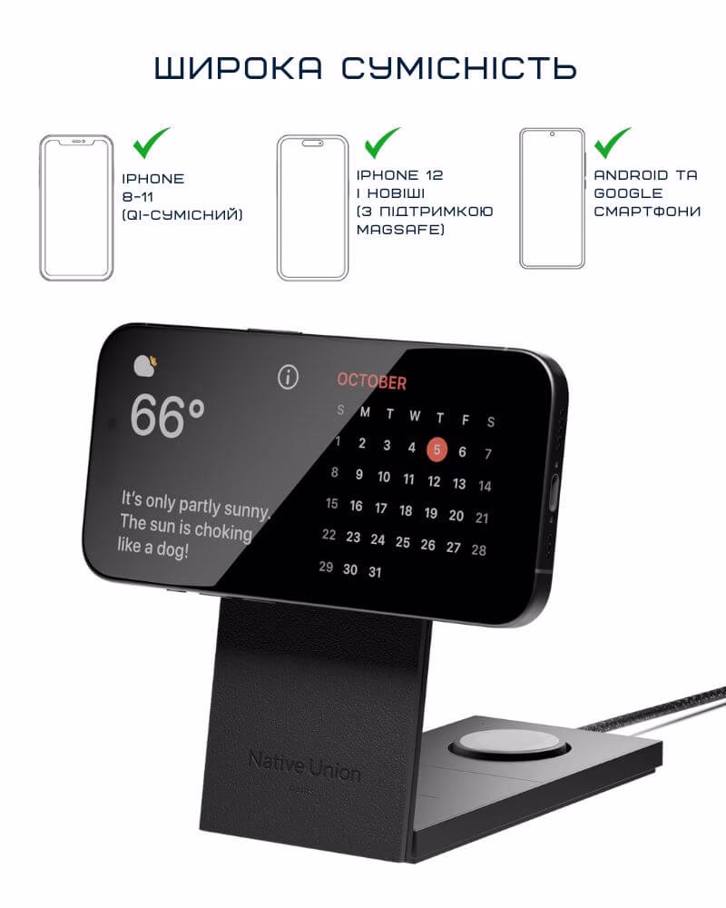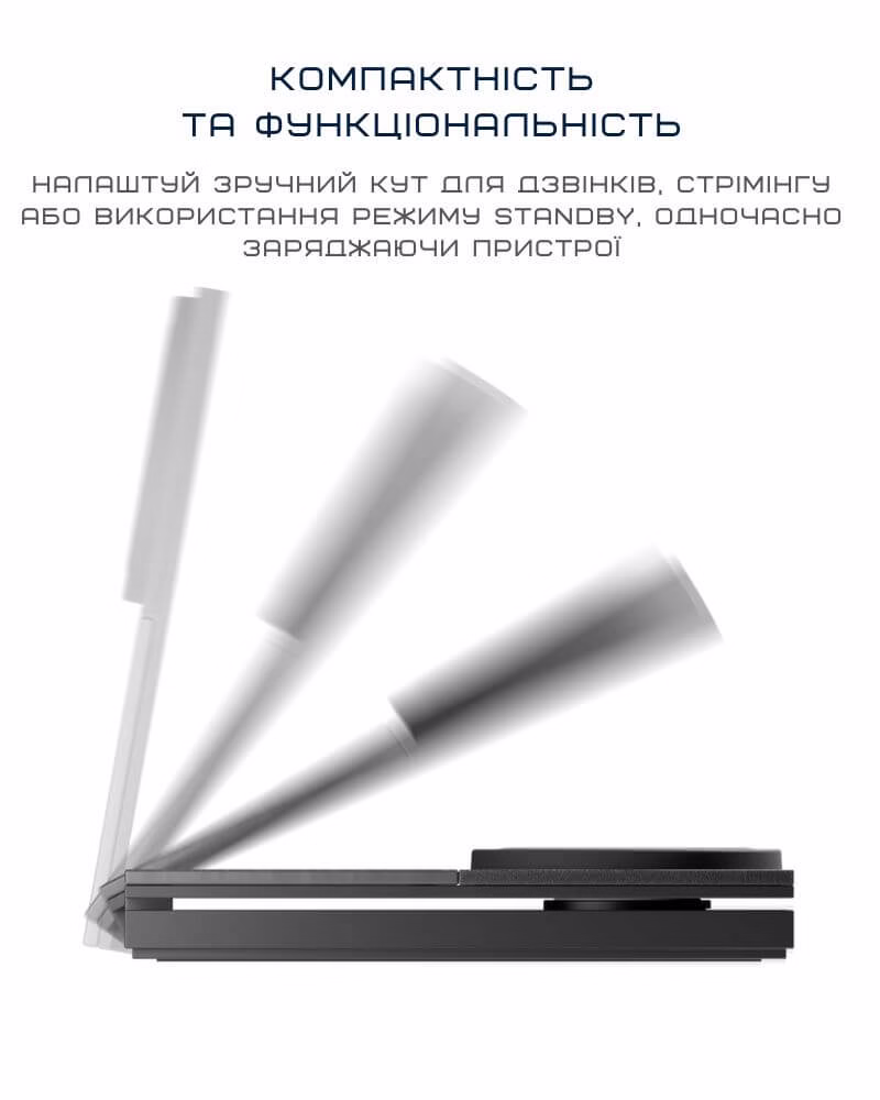 Благодаря регулируемому углу наклона твой телефон всегда в удобном положении. Прокручивай экран в портретном режиме, поворачивай для стриминга в горизонтальном, или же воспользуйся режимом StandBy, чтобы видеть список дел и часы. Множество вариантов отображения позволяют адаптировать зарядную станцию под твои потребности.