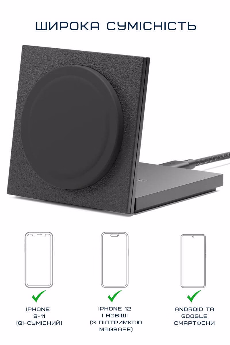 Выбирай, как тебе удобнее - заряжать телефон горизонтально или вертикально, пользоваться MagSafe или подключать другие Qi-совместимые устройства. Стильный, продуманный вид дополнит пространство, а мощная технология позаботится о безопасной энергии твоих гаджетов.