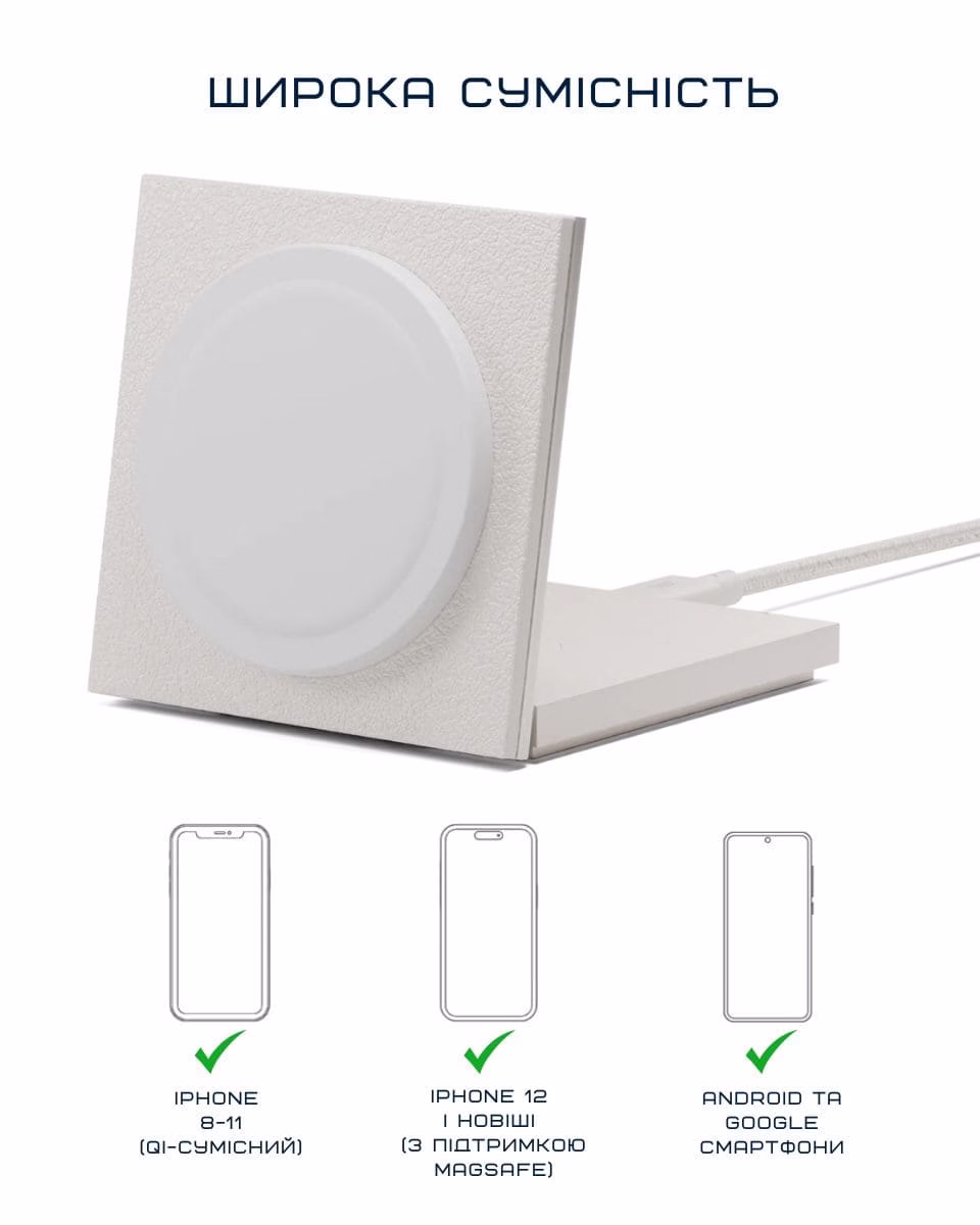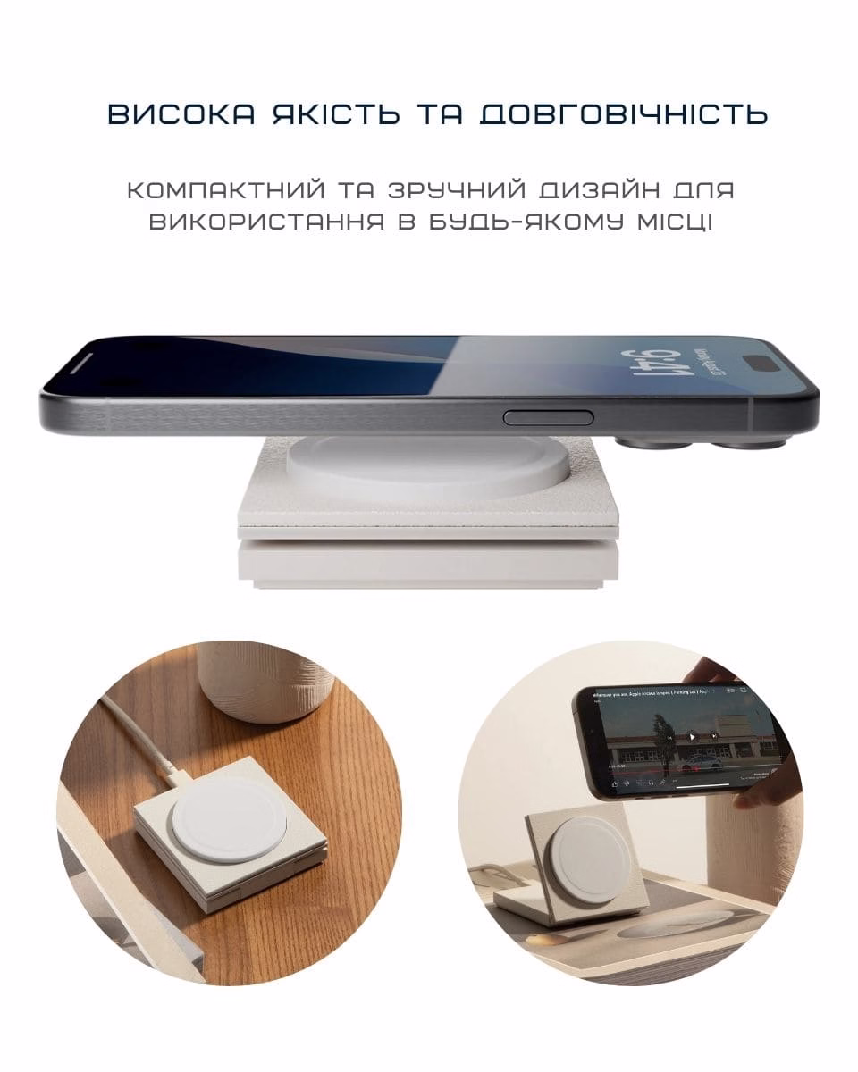 Выбирай, как тебе удобнее - заряжать телефон горизонтально или вертикально, пользоваться MagSafe или подключать другие Qi-совместимые устройства. Стильный, продуманный вид дополнит пространство, а мощная технология позаботится о безопасной энергии твоих гаджетов.