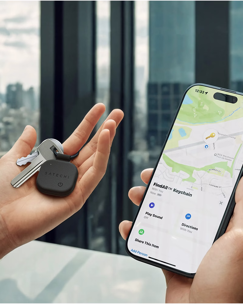 Брелок Satechi FindAll™ помогает избежать подобных моментов тревоги. Благодаря встроенному трекеру и интеграции с Apple Find My всегда видно, где ключи — рядом, в сумке или на столе. Если ключи потерялись на большом расстоянии, приложение подскажет точное местоположение или подаст сигнал для быстрого поиска. Прочный корпус из экологичной кожи надежно держит ключи и добавляет ментального спокойствия каждый день.