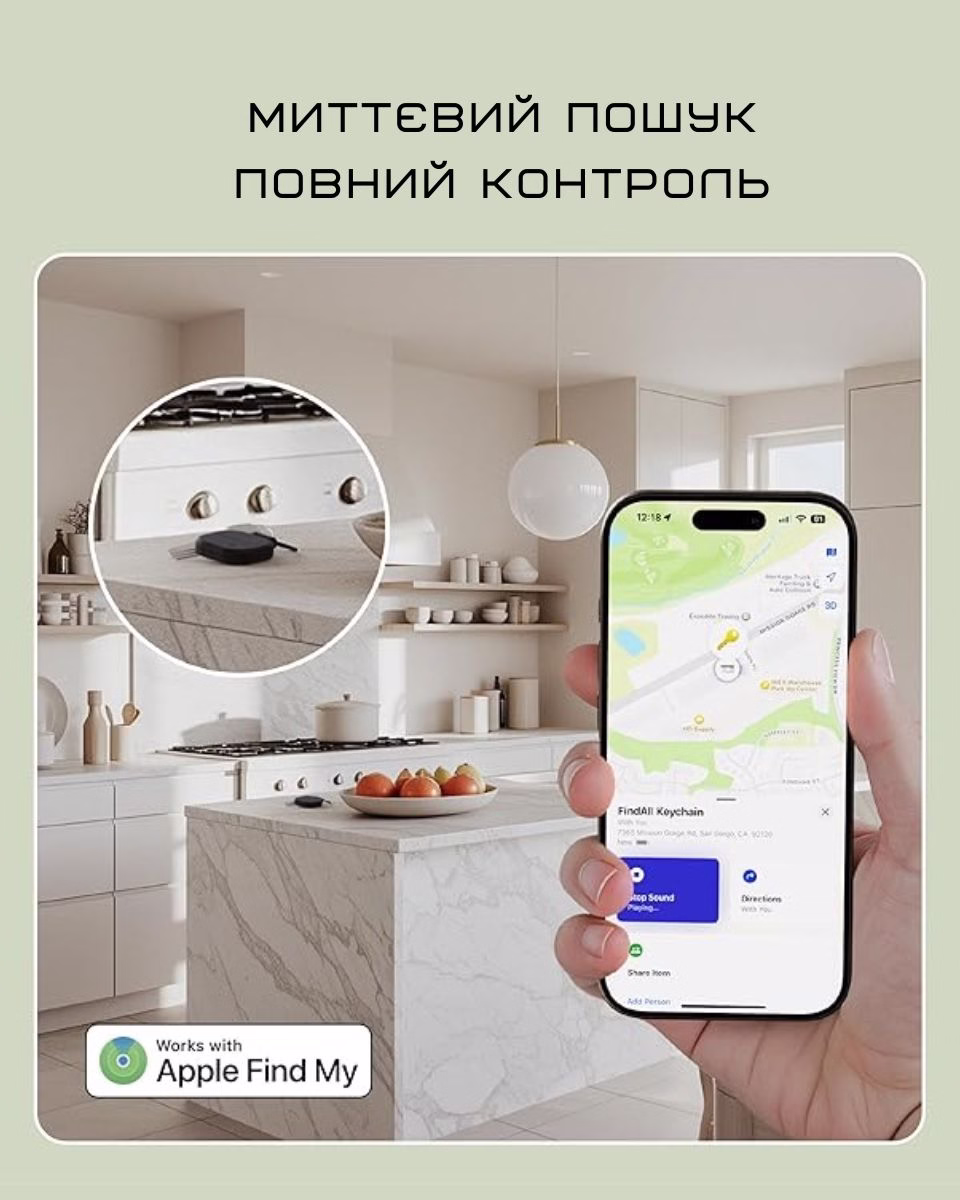 - Отслеживание вещей в реальном времени – интеграция с Apple Find My позволяет отслеживать ключи, сумки или другие предметы, включая громкий сигнал и точные указания.