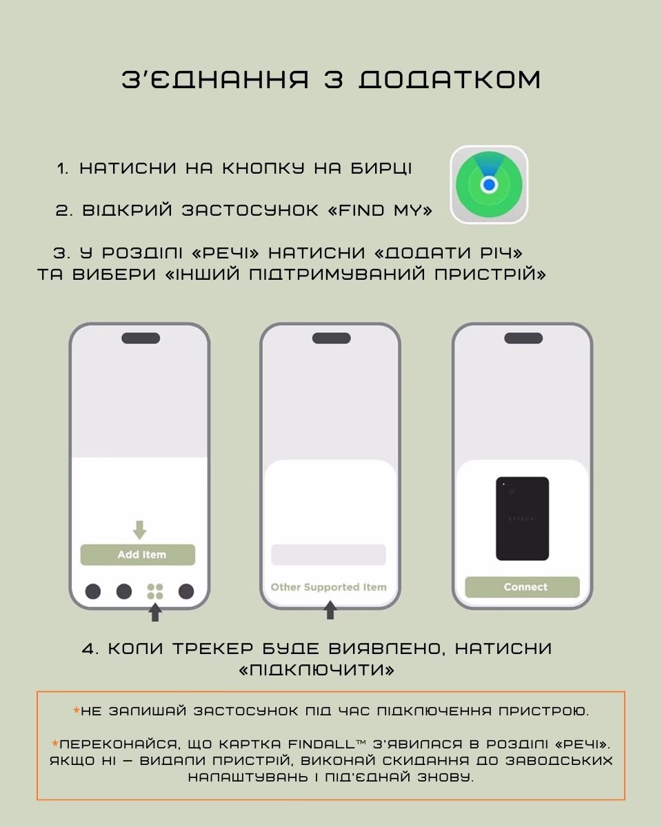 Трекер FindAll™ интегрируется с приложением Apple Find My, позволяя отслеживать точное расположение. Достаточно активировать сигнал в приложении — трекер издаст громкий звук для быстрого поиска, а на экране появятся точные подсказки, куда идти. Если брелок случайно остался дома или в офисе, телефон сразу об этом уведомит — и можно вернуться за ним, прежде чем день пойдёт наперекосяк.
