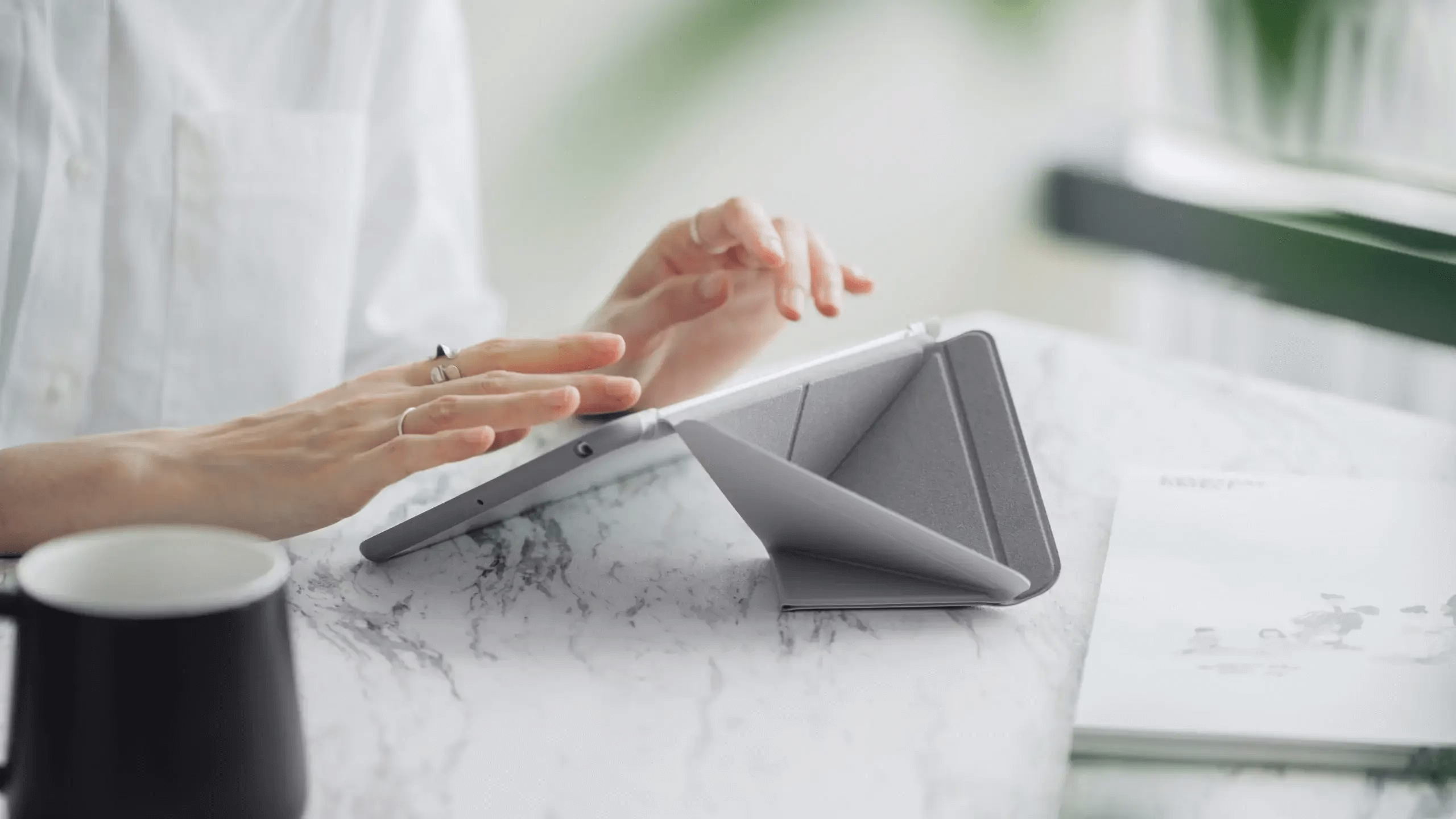 Чехол в стиле оригами обеспечивает защиту iPad mini на 360° и поддерживает разные углы обзора. Обложка с микрофиброй и магнитной застежкой защищает сенсорный экран и Apple Pencil, а также крепится к металлическим поверхностям без рук.