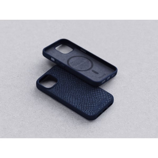 sliding Чехол-накладка Njord Salmon Leather MagSafe Case Blue для iPhone 15