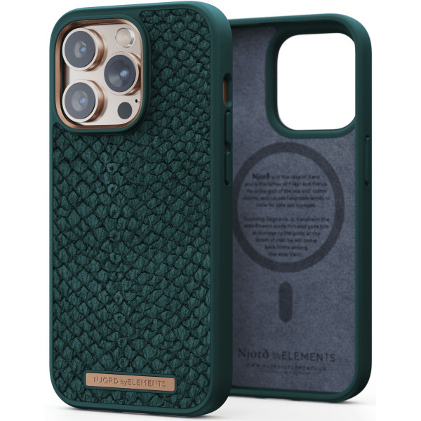 sliding Чехол-накладка Njord Salmon Leather MagSafe Case Green для iPhone 14 Pro