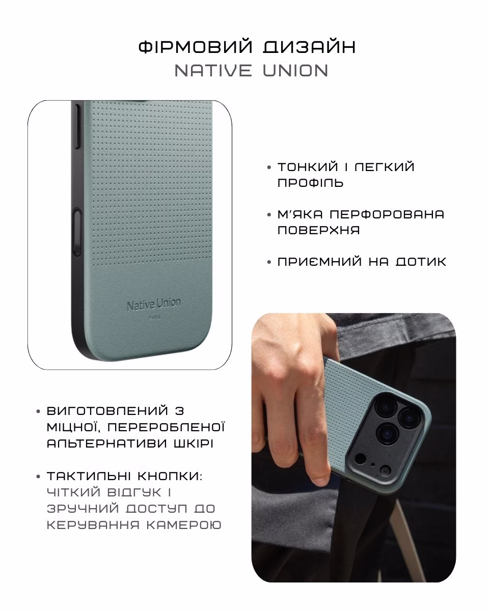 Чехол Native Union Active для iPhone 17 Pro Slate Green