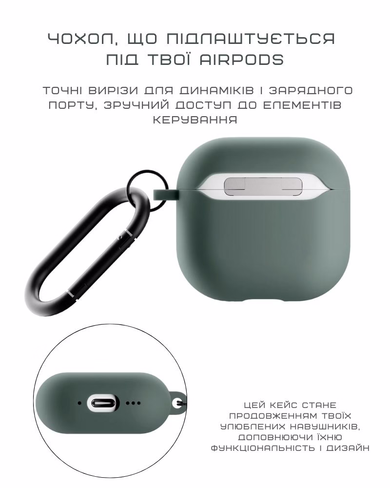 Минималистичный по стилю, но максимально функциональный. Благодаря матовому металлическому карабину чехол легко крепится к сумке, ремню или ключам, чтобы твои AirPods всегда были под рукой.
