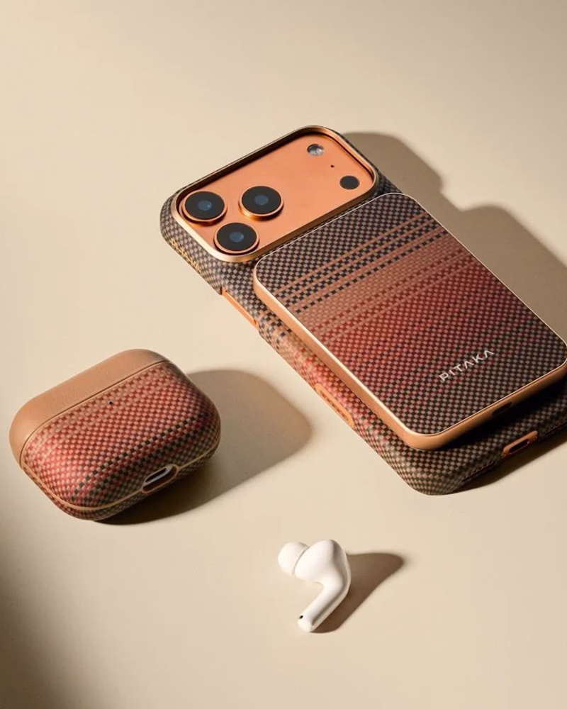 PITAKA Aramid Fiber Magnetic Case для AirPods Pro 3 сочетает премиальную PU кожу сверху и прочную арамидную основу для легкой защиты. Встроенные магниты N52 обеспечивают точное выравнивание и простую магнитную и беспроводную зарядку. Текстурирование и силиконовый модуль против царапин повышают долговечность. Дизайн вдохновлен классической текстурой PITAKA и сочетается с другими аксессуарами.