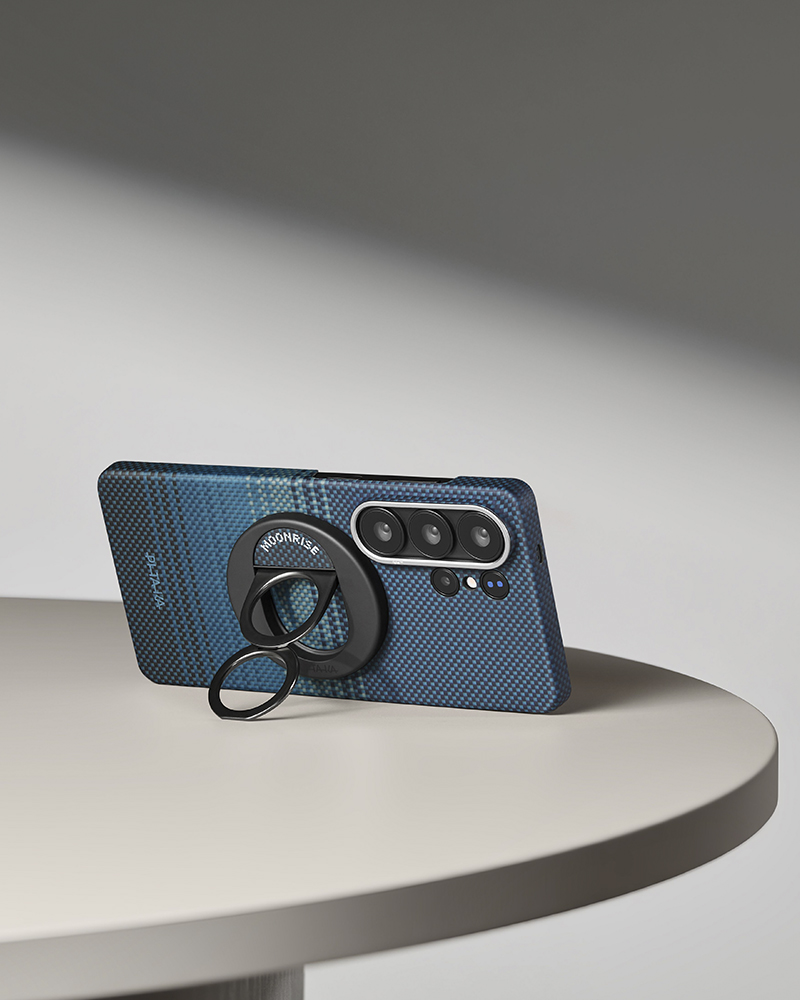 Чехол Pitaka Edge серии Moment в дизайне Moonrise вдохновлен таинственностью ночного неба и восходом луны. Использование технологии Fusion Weave позволило воплотить переливы синих и фиолетовых оттенков непосредственно в плетении арамида, создавая эффектную и долговечную поверхность.