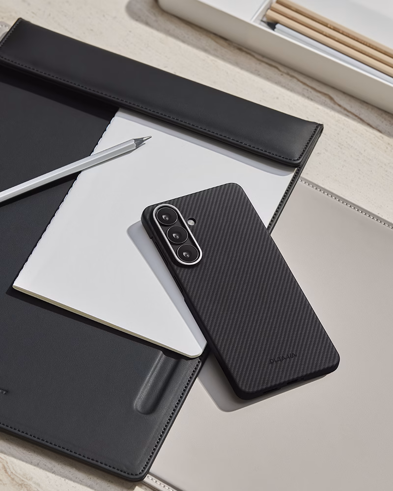 Pitaka Edge Ultra-Slim — это воплощение философии техно-минимализма, где сверхпрочное арамидное волокно 600D соединяется с интеллектуальной функциональностью. Чехол сохраняет аутентичный силуэт вашего Samsung Galaxy S26, добавляя ему премиальную текстуру и уникальную возможность физического управления цифровым пространством с помощью кнопки Aaron Button.