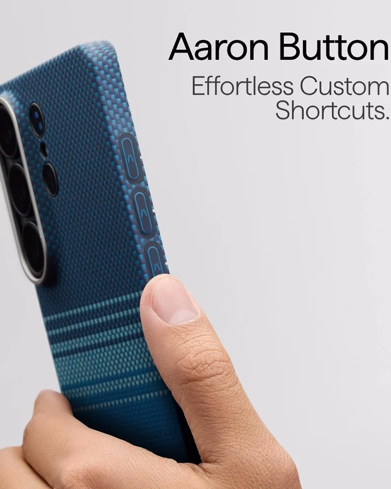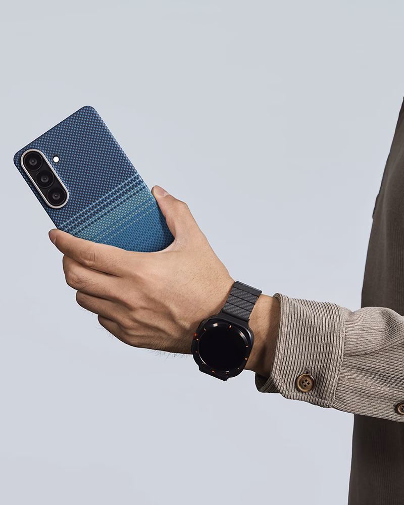 - Текстура премиум-класса: шероховатая поверхность арамидного волокна обеспечивает надежный хват, предотвращая выскальзывание смартфона даже из влажных рук.