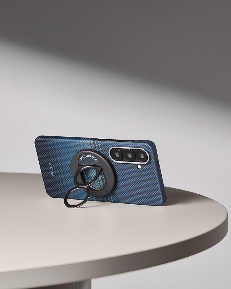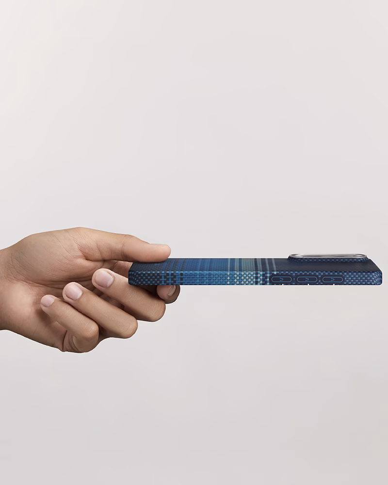 Pitaka Edge Ultra-Slim Moment — это манифест эстетики Weaving+, где высокие технологии встречаются с искусством. Дизайн Moonrise воссоздает завораживающий переход от заката к лунному свету с помощью сложного переплетения цветных нитей арамидного волокна. Это чехол для тех, кто ценит не только защиту, но и глубокий визуальный смысл в каждой детали.