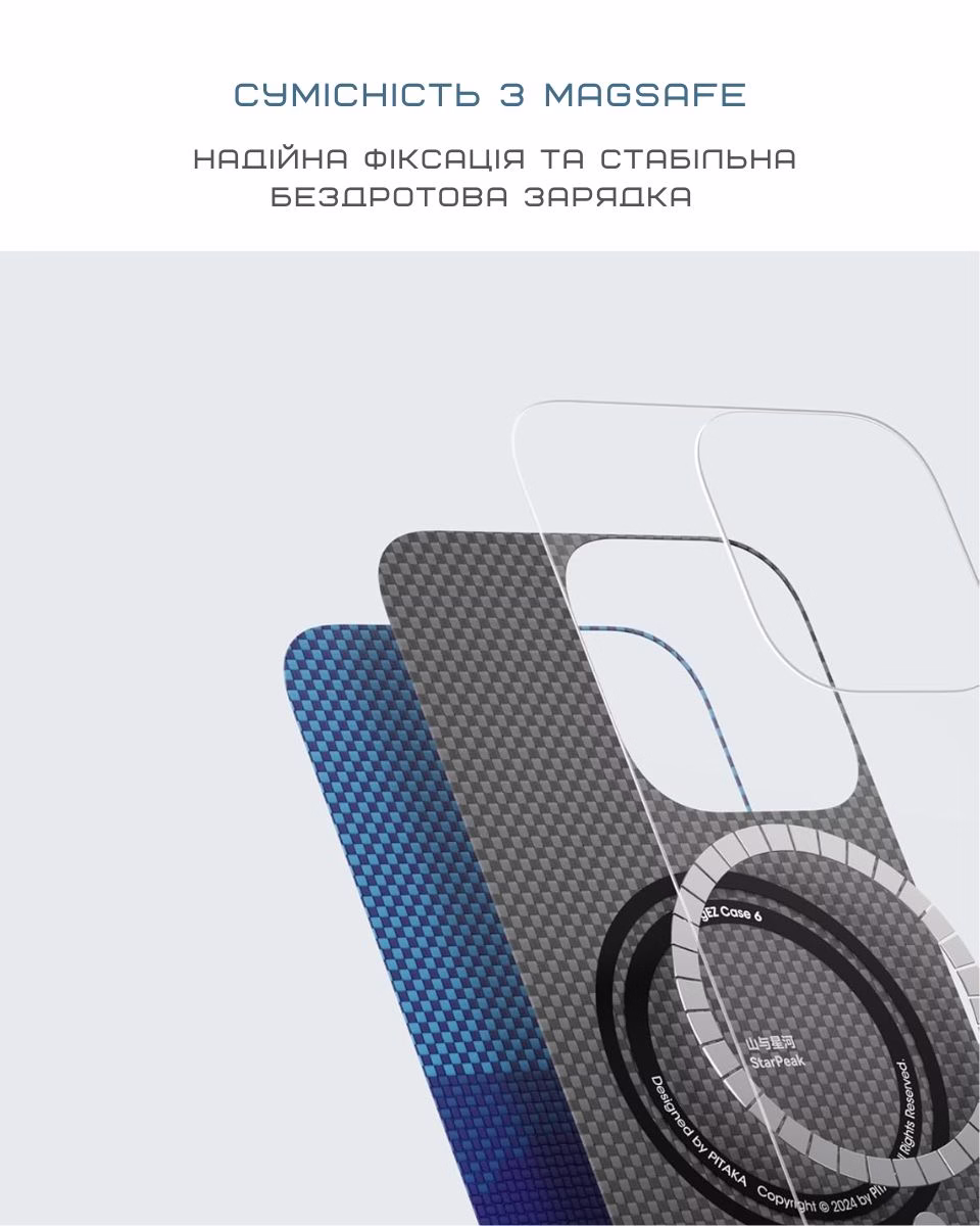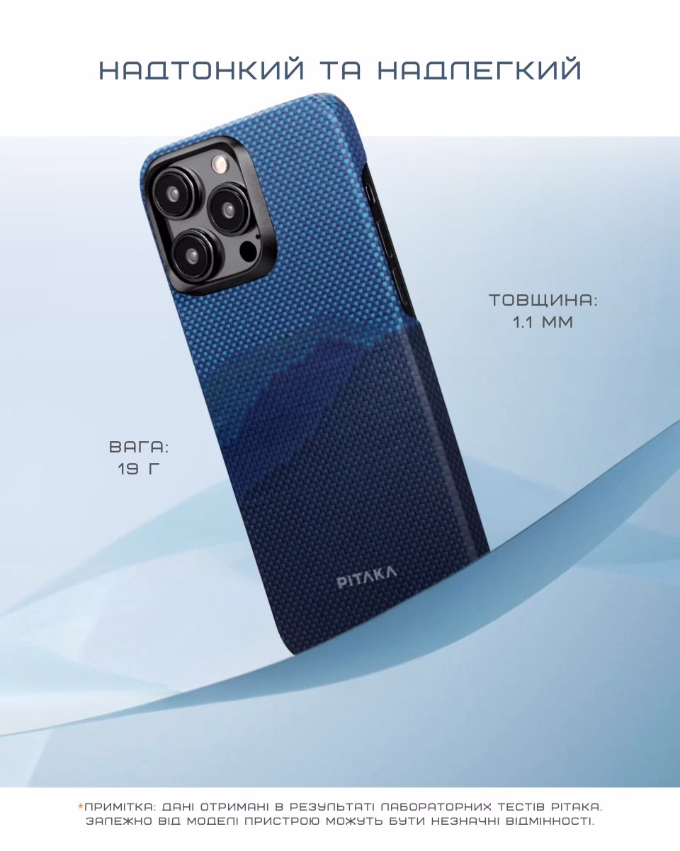 Серия StarPeak Over The Horizon от Pitaka символизирует путь к достижениям и покорению вершин, которые наполняют нашу жизнь. Дизайн чехла вдохновлён горными пейзажами и напоминает о силе природы и стремлении к высотам. Технология плетения из арамидного волокна формирует визуальный эффект, который переливается и создаёт ощущение глубины и движения. Чехол как будто оживает, отражая бесконечный ночной горизонт прямо у вас в руках.