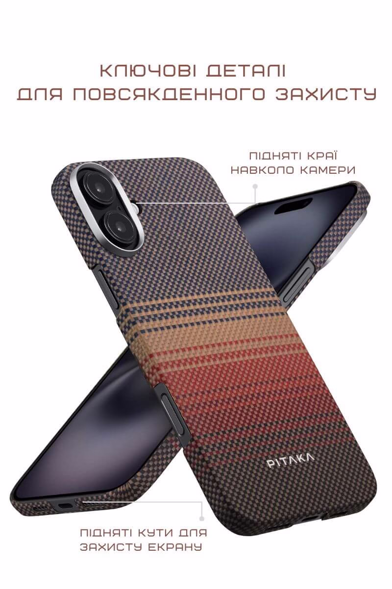 Коллекция Sunset переносит в момент, когда солнце угасает за горизонтом и начинает проявляться луна, восхищая своей красотой и переливами оттенков. С чехлом Pitaka твой телефон станет частью твоего стиля, привлекающей внимание и вызывающей эмоции.