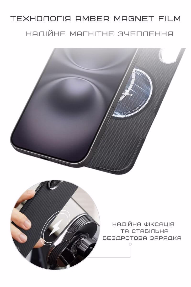 Магнитное кольцо бесшовно интегрировано в чехол, сохраняет свою мощность и четкость, при этом чехол остается невероятно тонким и легким.