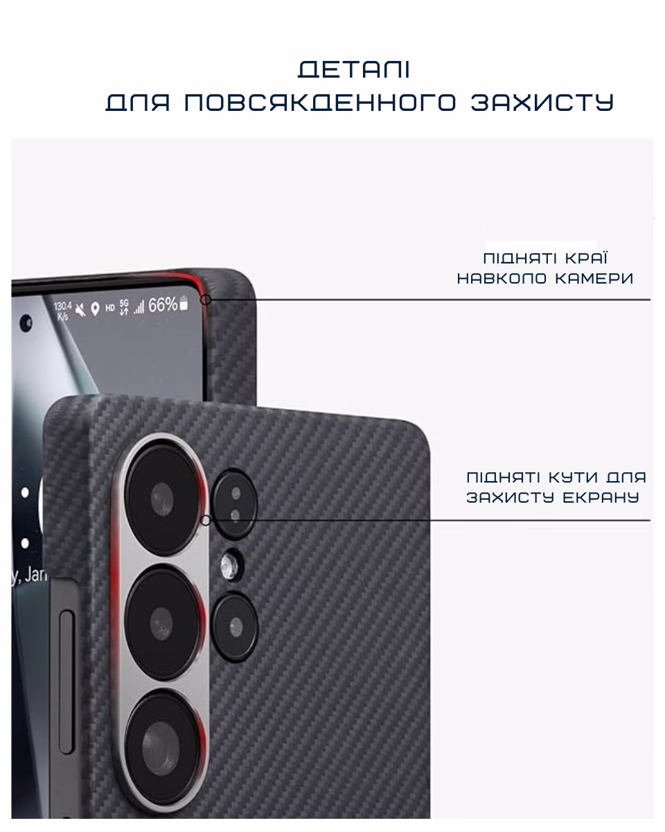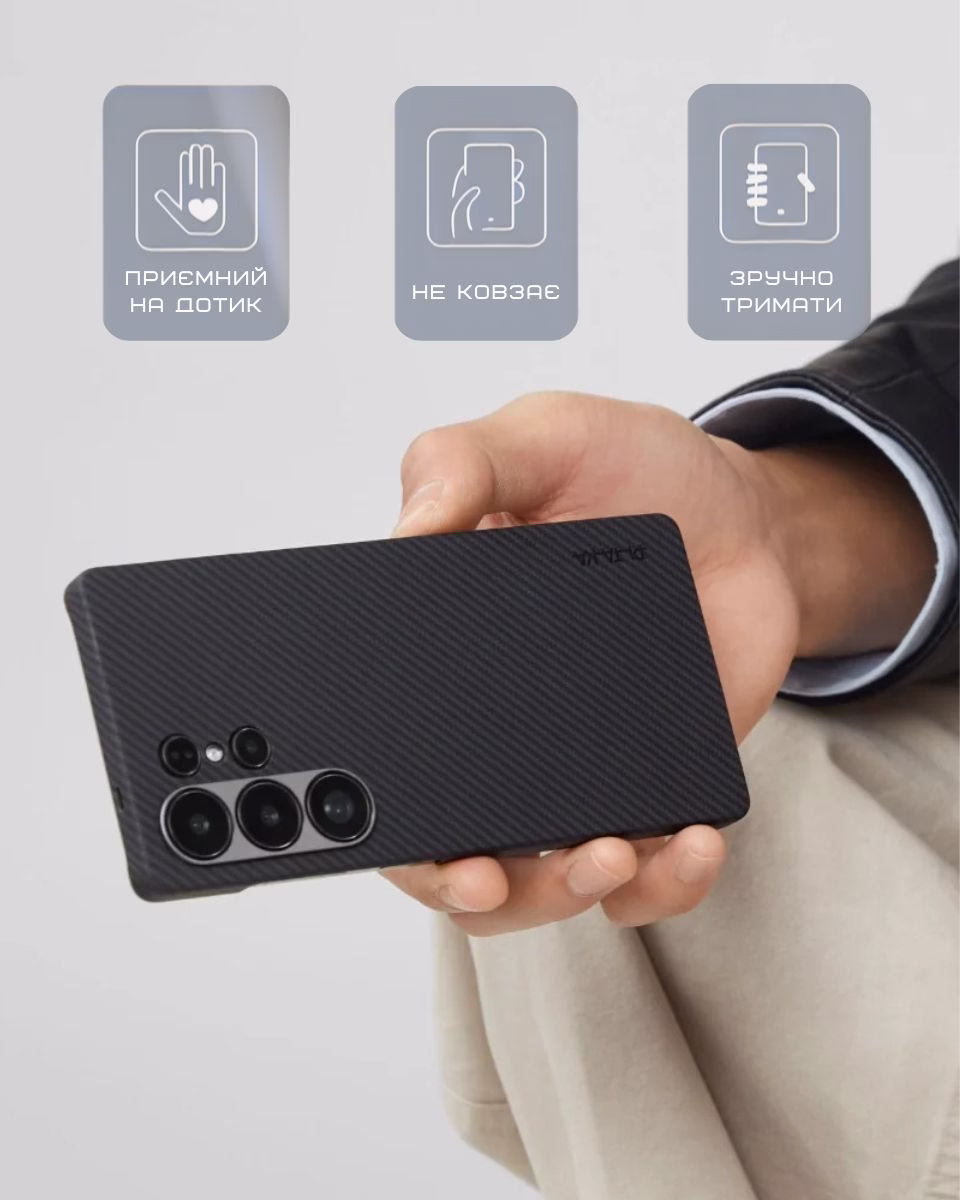 Сверхпрочный чехол из арамидного волокна защищает телефон от неожиданных падений, царапин и ударов. Стильный, невесомый и надежный аксессуар премиального качества, который не захочется выпускать из рук.