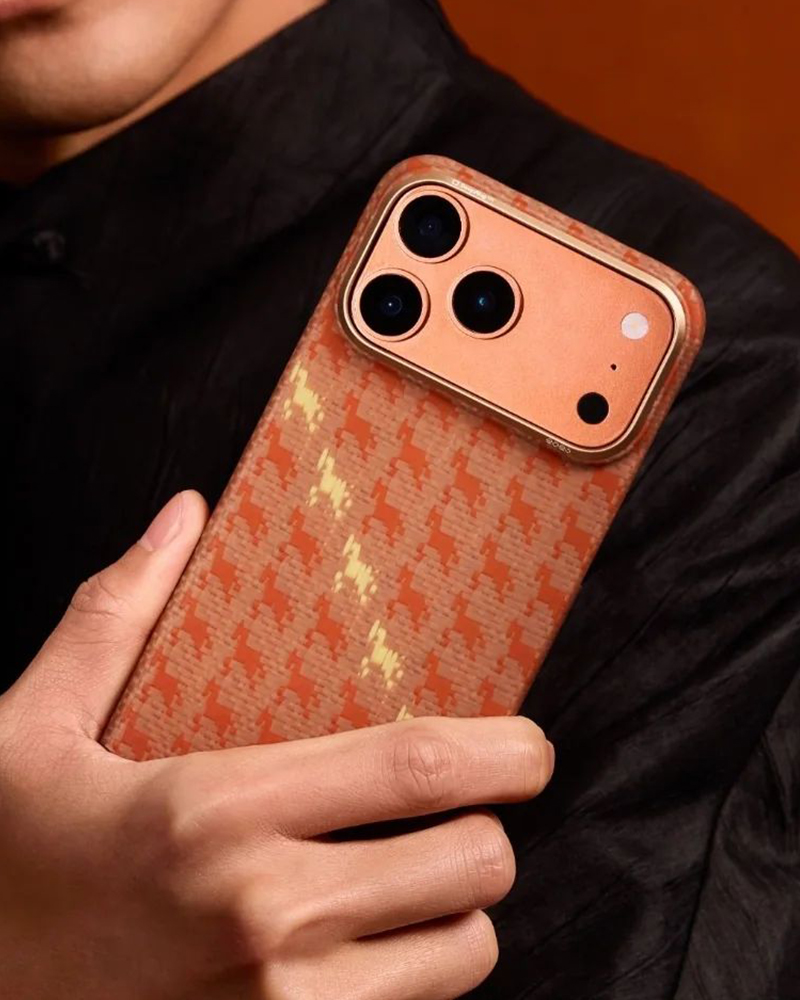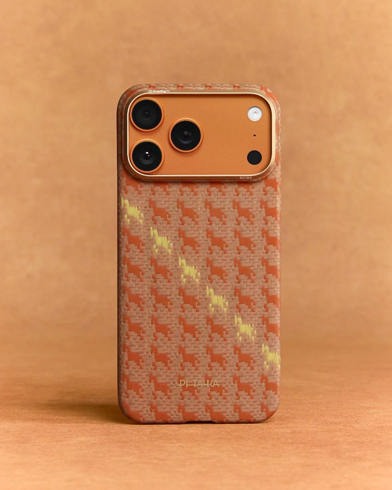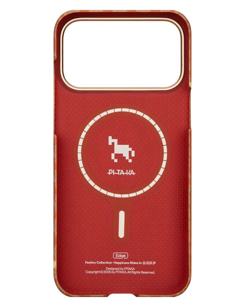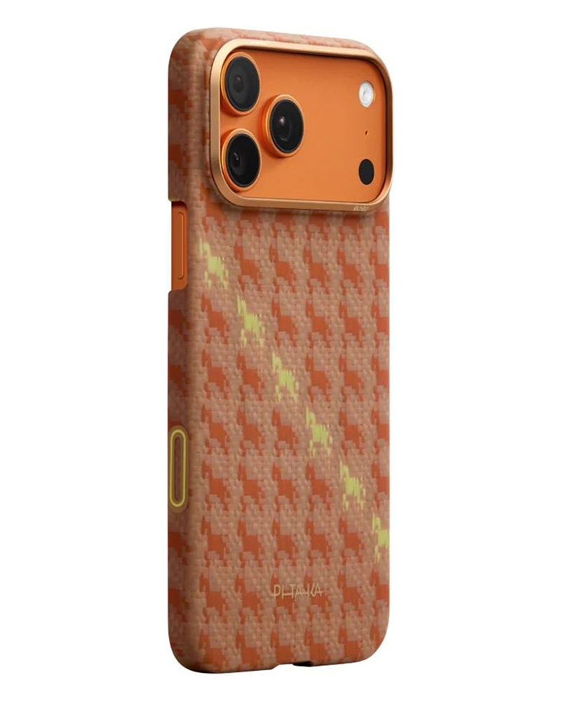 Чехол Pitaka серии Happiness Rides Amber — это яркое технологичное решение для iPhone 17 Pro, вдохновленное 2026 годом (Годом Лошади). Трехслойное плетение нитей Fusion Weave создает уникальную текстуру, которая выглядит эффектно и подчеркивает динамику дизайна.