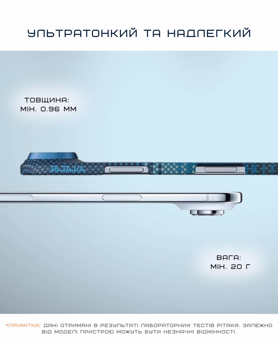 Чехол Pitaka Ultra-Slim не скрывает iPhone Air — он лишь подчёркивает его тонкий, элегантный профиль. Арамидное волокно защищает телефон от неожиданных падений, царапин и ударов. Чехол сохраняет естественное, комфортное ощущение в руке — будто держишь сам iPhone, только с дополнительным уровнем защиты.
